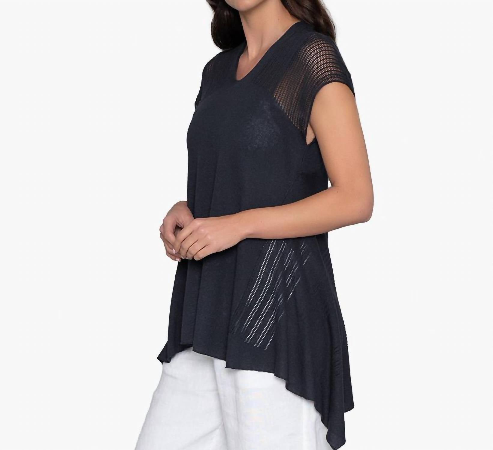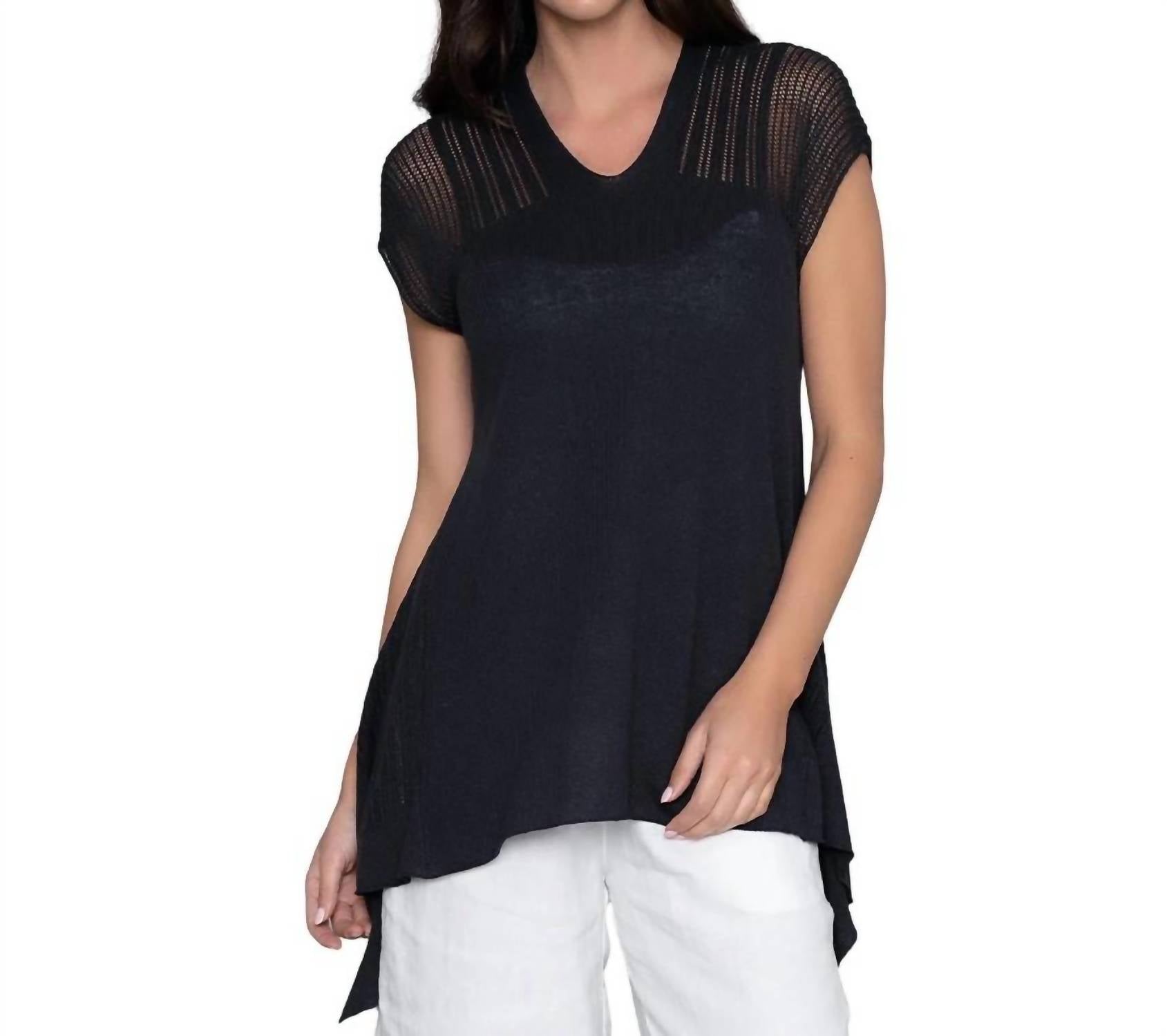 Crafted from lightweight knit. A-line shape and high-low hem. Mixed stitch design. Back length is approximately 28" long on size S. Model is 5'11" wearing size S.