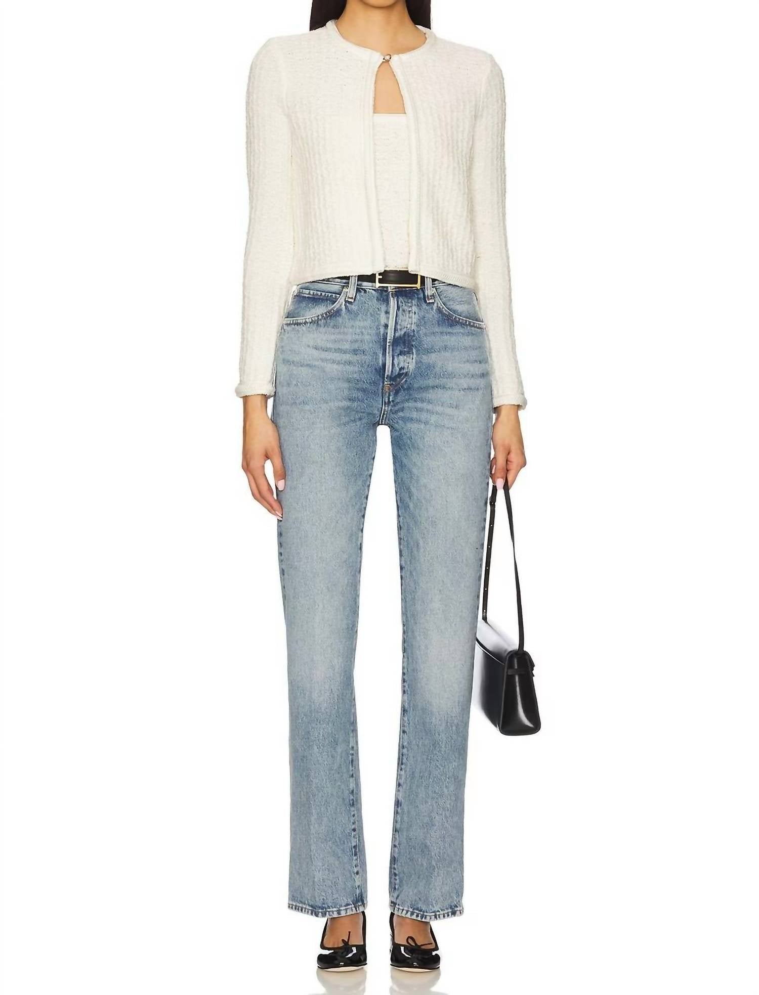 A classic fit that works just as good buttoned as it does left open. Discover the Blaise Cardigan Set by ASTR, an elegant addition to your wardrobe in a chic cream color. This long-sleeve cardigan features a textured pattern with contrast braided trim and pearl button closure at the center front neck, adding a touch of sophistication. Crafted from a cotton blend with Yarn 1: 65% Cotton, 35% Nylon and Yarn 2: 100% Cotton, it measures 17.5" in length and runs small, so consider sizing up for a perfect fit. Dry clean only.