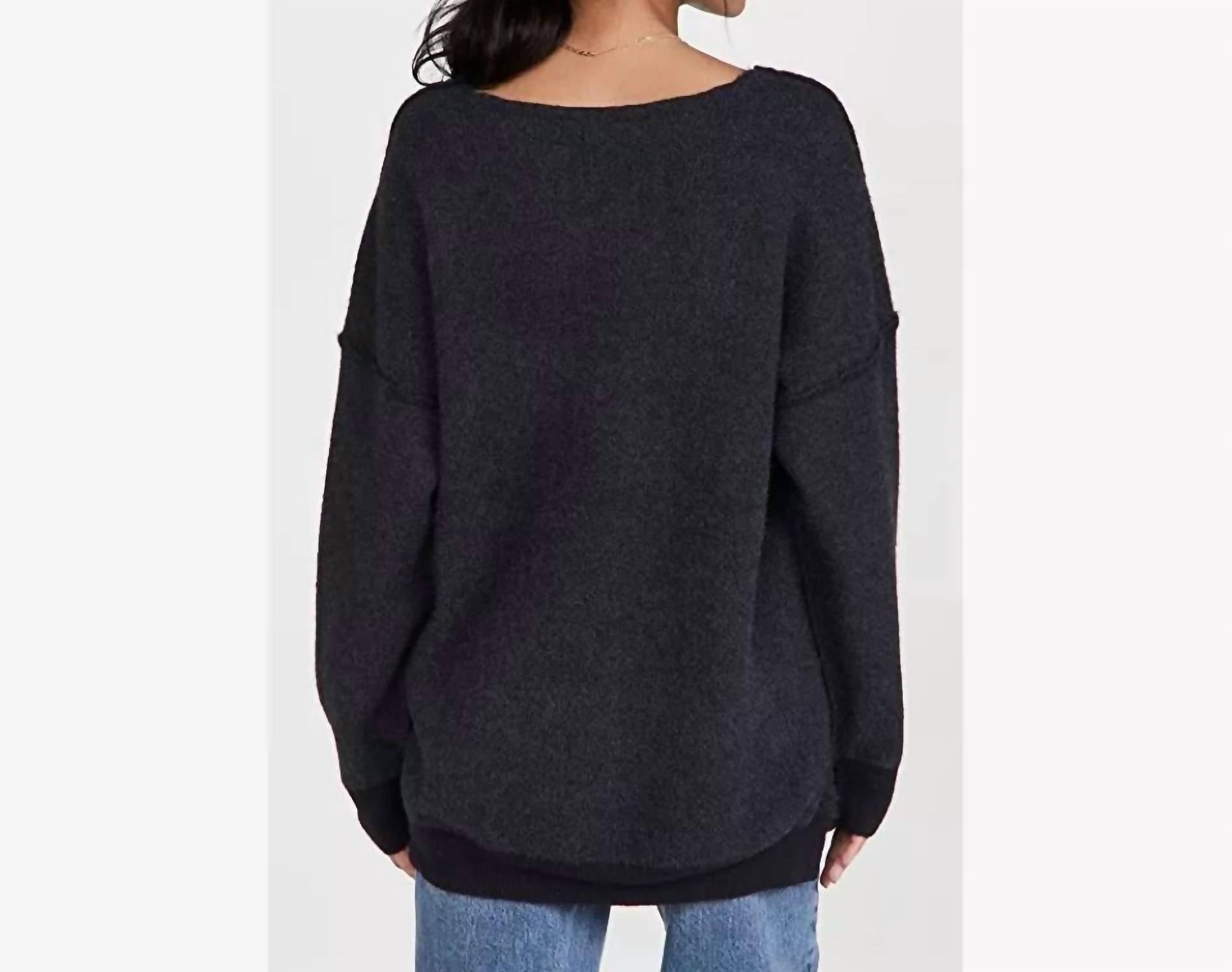 Deep V-Neckline. Long sleeves. Slouchy oversized fit. Thick knit. 100% nylon. Dry clean or hand wash, dry flat. Imported. Approx measurements: 20" underarm to underarm; 25 1/2" front length; 27" back length.