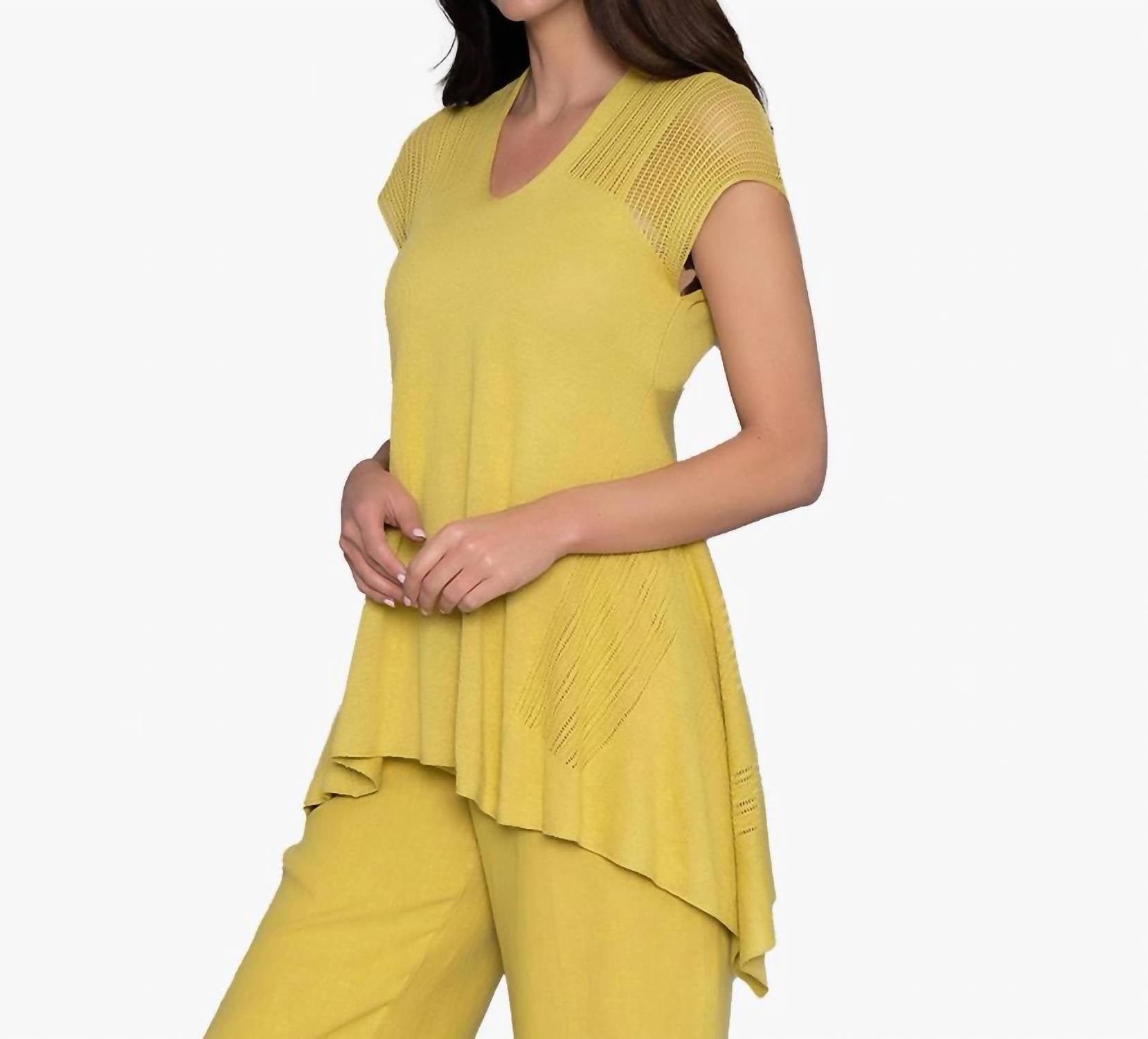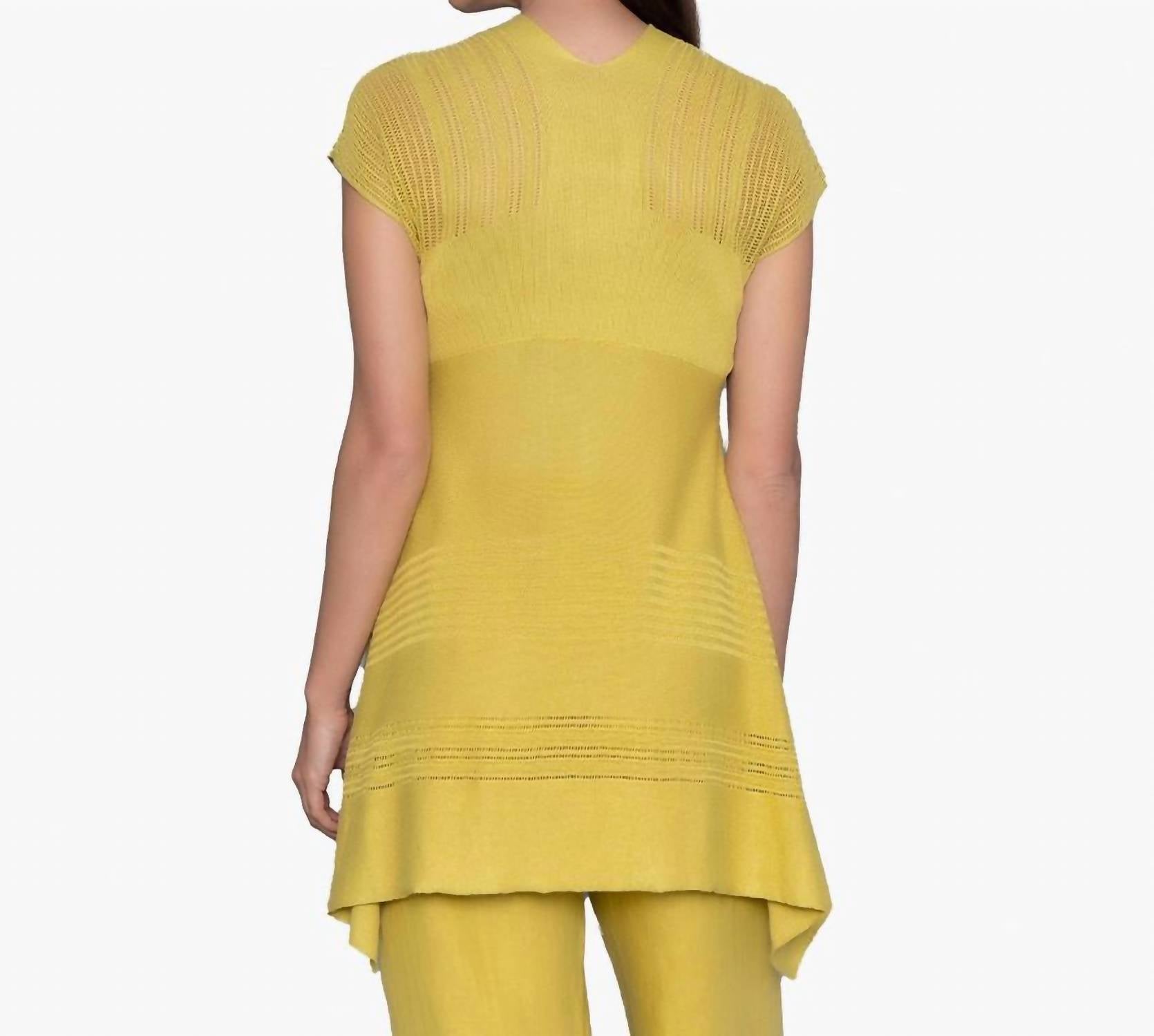 Crafted from lightweight knit. A-line shape and high-low hem. Mixed stitch design. Back length is approximately 28" long on size S. Model is 5'11" wearing size S.