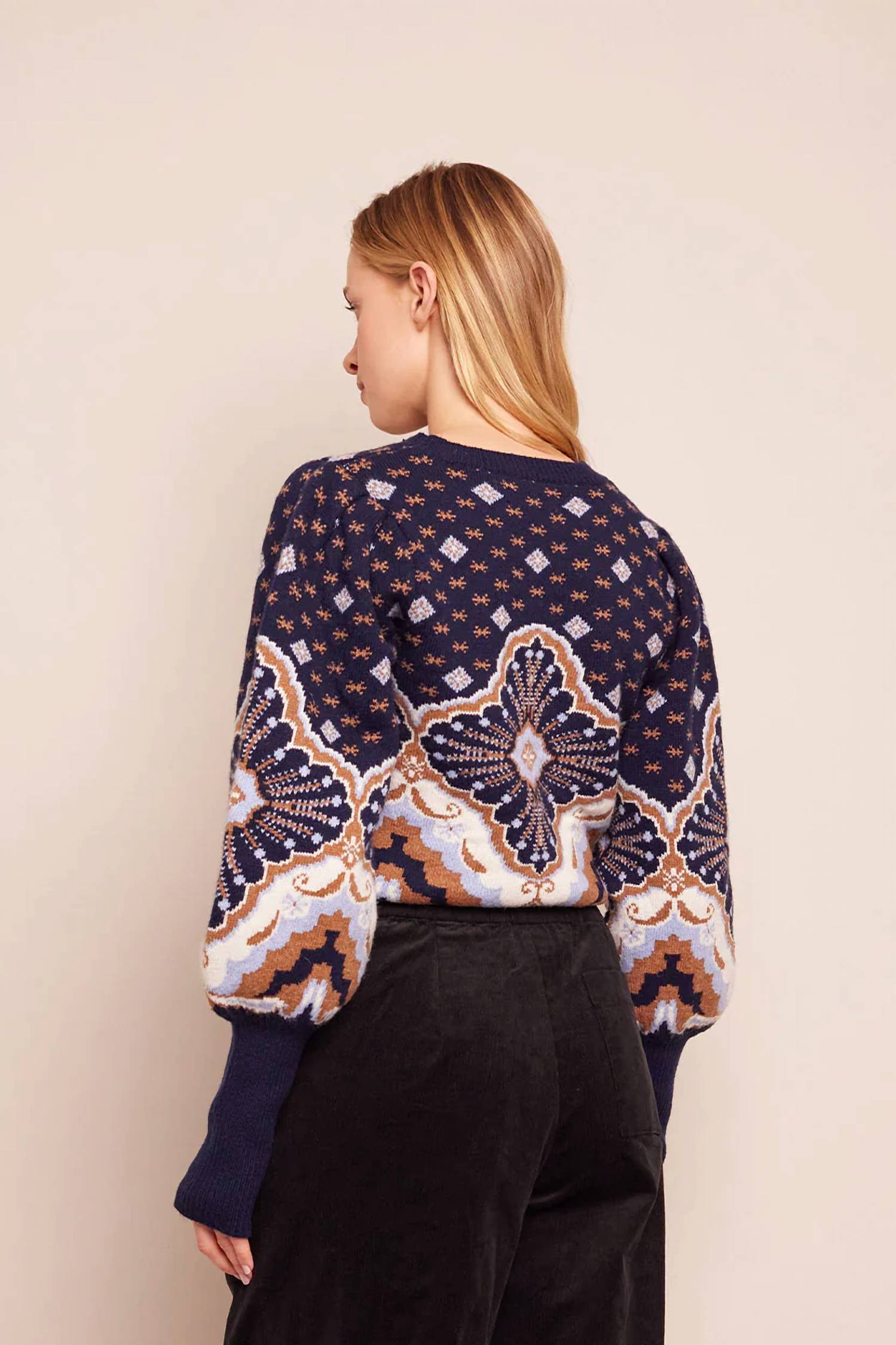 Stay warm and stylish in this versatile and effortlessly cool knitwear staple. Wear it alone or layered, it's the perfect sweater for the season and you'll wish you had it in every color. Designed for modern elegance. Long-sleeve piece. Features a lantern puff sleeve and a classic crew neck. Intricate jacquard knit. Made with a blend of 45% Nylon, 30% Cotton, and 25% Wool. Offers a convenient pull-on closure. Dry clean only or hand wash cold for best results. Crafted in China.