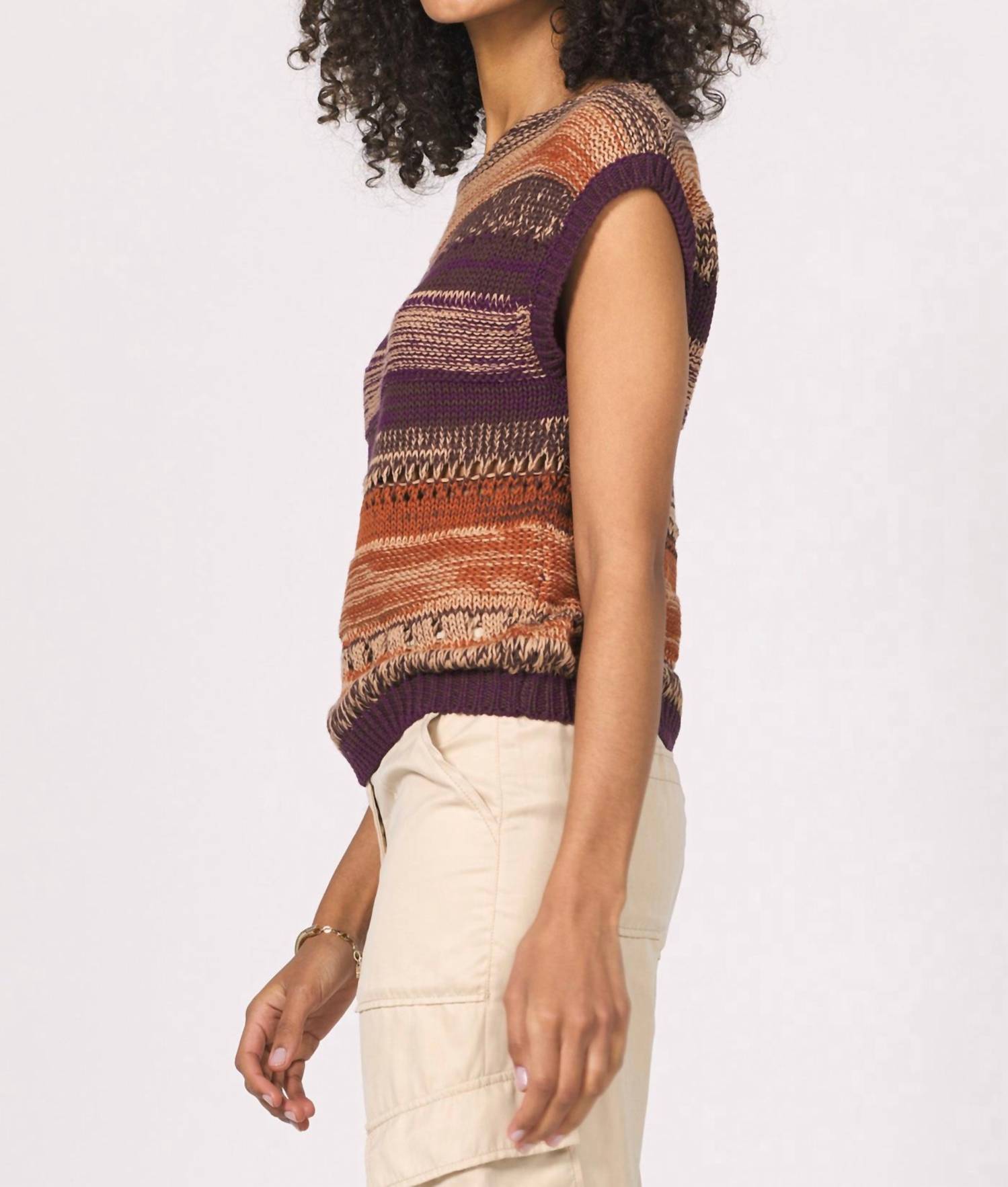 Experience the perfect blend of comfort and style with this trendy crew neck sweater, designed to effortlessly elevate your wardrobe. Pair it with your favorite denim and loafers for the perfect look. Embrace effortless style with the Lina Top by Another Love, a sleeveless sweater in a striking Dark Orchid Ombre design. Crafted from 100% cotton, this piece offers a relaxed fit with a classic crew neckline, ideal for layering or wearing alone. With its pull-on closure, it seamlessly combines comfort and elegance, making it perfect for any holiday party or casual outing during the spring season. Care: Hand wash cold and reshape dry flat for best results.