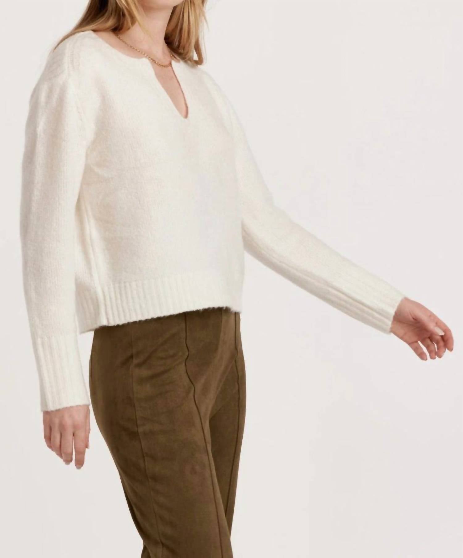 A timeless v-neck sweater that works season after season. Elevate your fall travel wardrobe with the Women's Coraline Sweater by Another Love, a minimalist essential in chic white. This long-sleeve, textured knit piece comes in a classic V-neck design, offering a stylish and comfortable fit. Closure is pull-on for convenience, and though care instructions aren't specified, this timeless piece is versatile enough for any minimalist's collection.