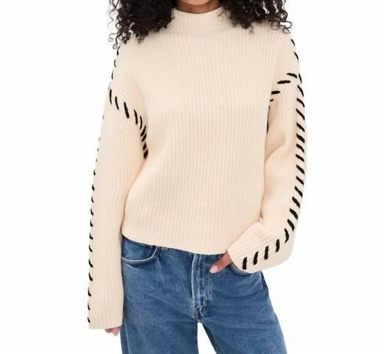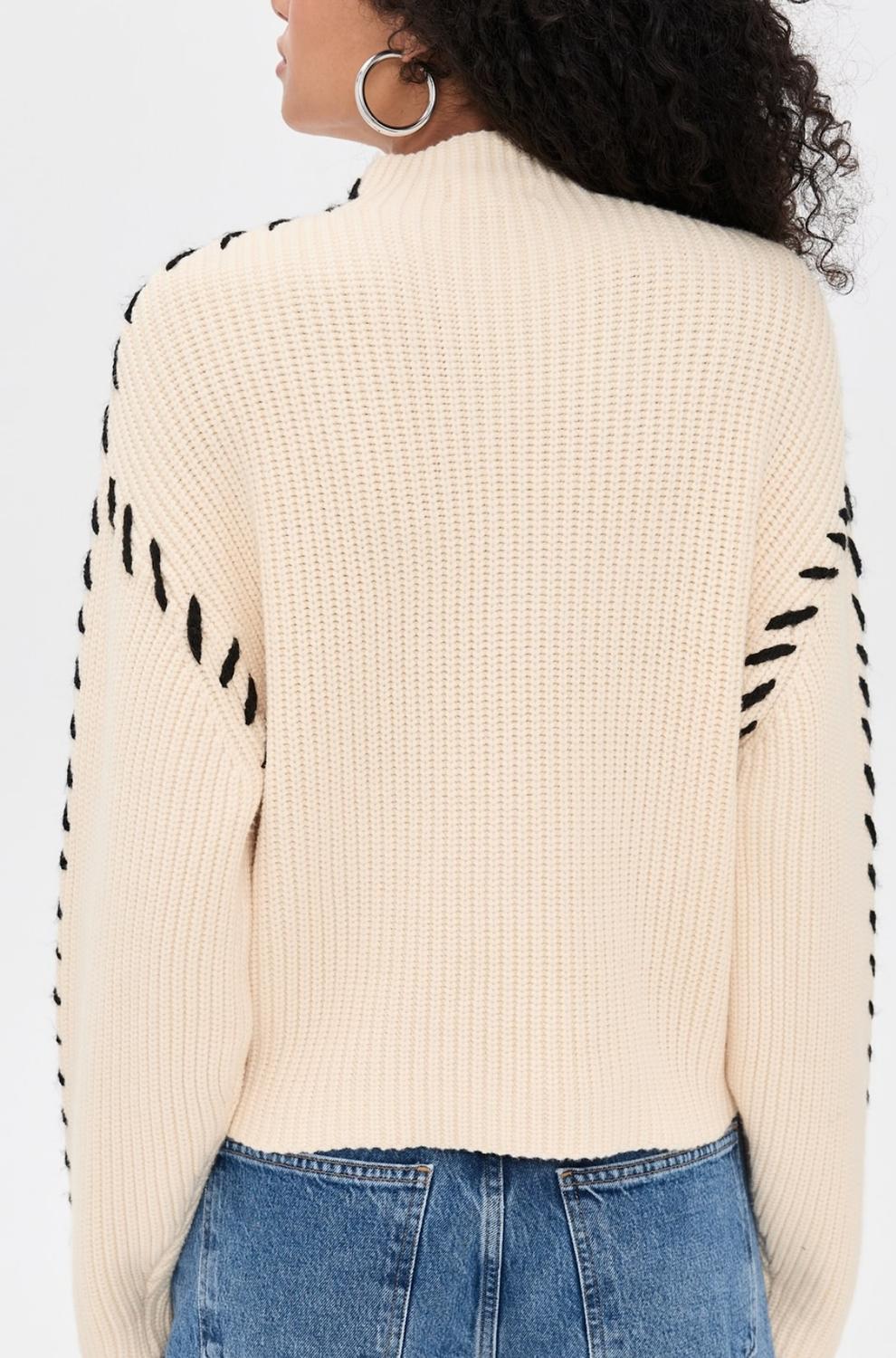 Fit to perfection and effortlessly chic. Embrace effortless elegance with the Steady Ground Sweater by BLANKNYC, designed with a chic mock neck and crafted from a luxurious Viscose Blend. Perfect for fall getaways, this cream sweater features long sleeves and striking black stitching for added style. Made with a convenient pull-on closure, it combines comfort with easy wearability. Care: Hand wash only.