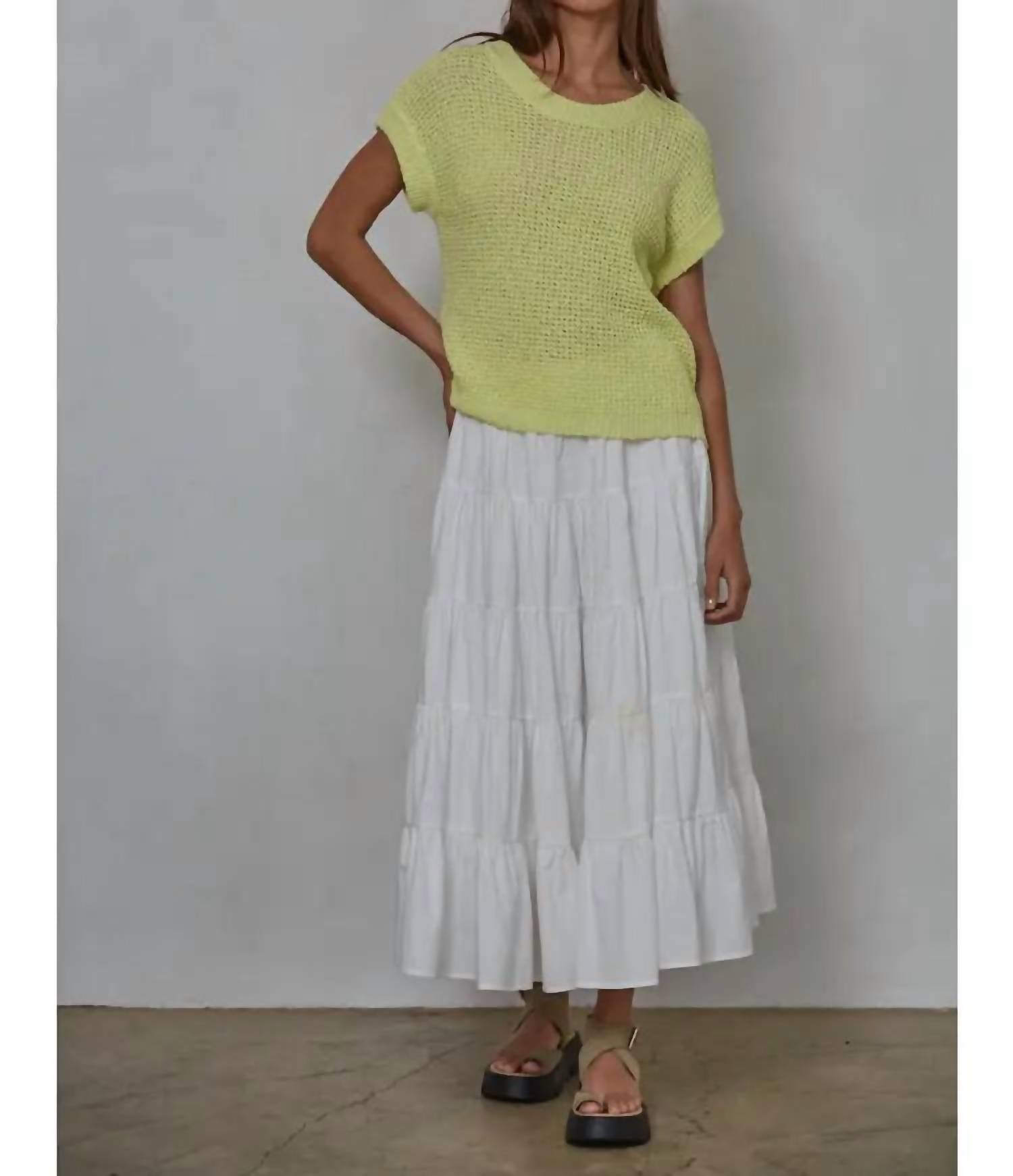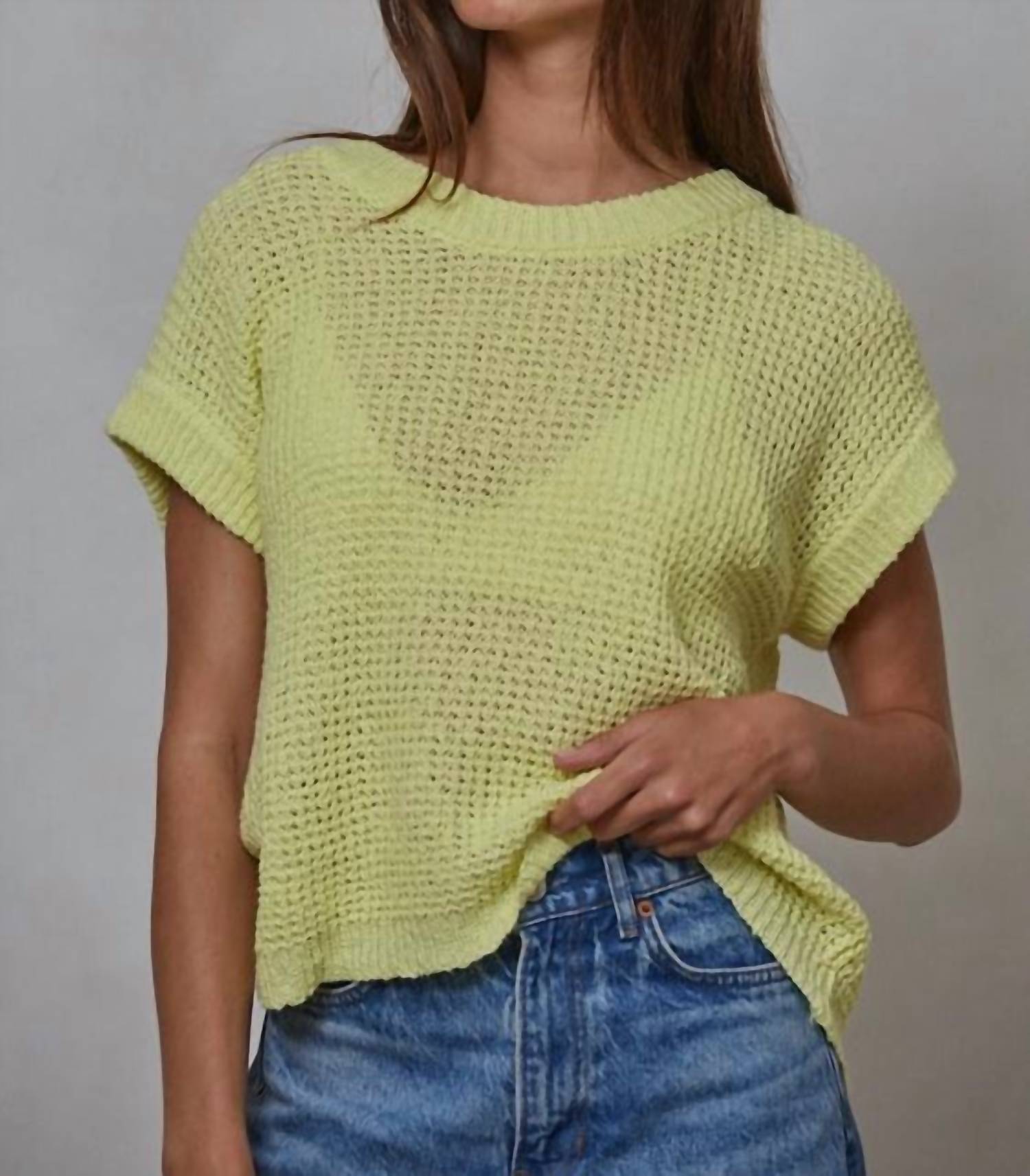 Experience the perfect blend of comfort and style with this trendy crew neck sweater, designed to effortlessly elevate your wardrobe. Pair it with your favorite denim and loafers for the perfect look. Wrap yourself in the vibrant charm of the Cerrone Short Sleeve Sweater by By Together, crafted from 100% cotton for supreme comfort. This citrus lime beauty boasts a textured finish and a classic crewneck, making it perfect for both layering or as a standalone piece. With its pull-on closure, this sweater embodies the effortless 90s fashion trend while bringing a touch of casual flair to any fall vacation wardrobe. Care instructions: Hand wash to maintain its bright, fun appeal.