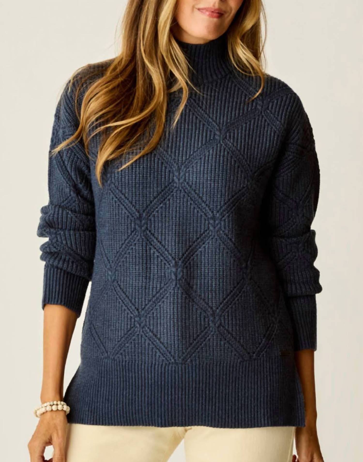 Layer under your favorite sweater or wear tucked into jeans for a perfectly polished winter look. The Woodward Allover Sweater is a relaxed-fit garment featuring an allover stitch design, side slits, and a tall rib hem. Designed to be paired with Carve Designs pants and the Sutton Boucle Jacket, it must be machine washed on a sweater cycle with like colors, laid flat to dry, and should not be bleached.