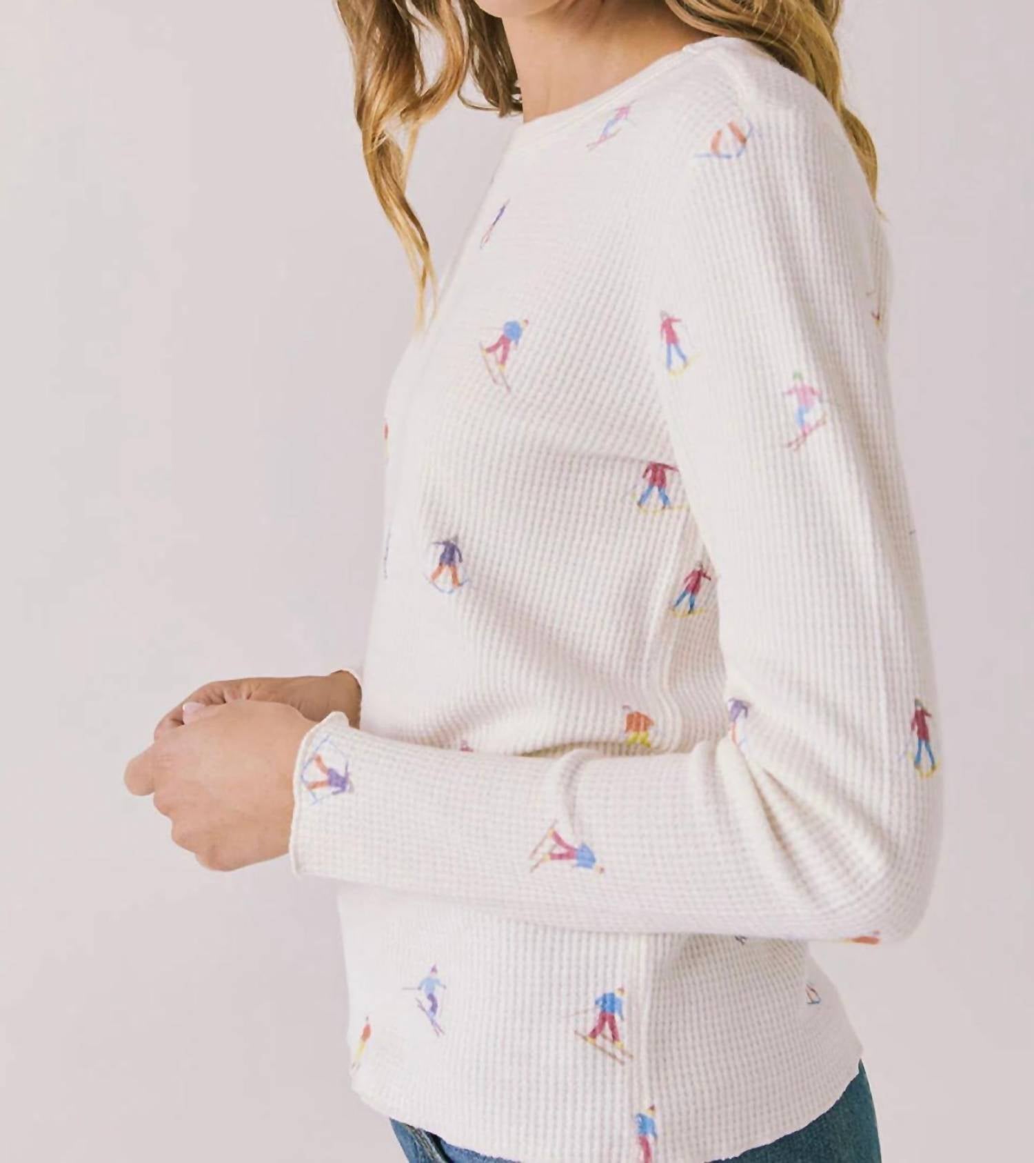 The ultimate go-to sweater, expertly crafted to provide the perfect combination of warmth and style. Its classic design and soft fabric make it a must-have addition to your wardrobe. Presenting the Allover Skiers Long Sleeve by Chaser, a whimsical piece perfect for adding a playful touch to your wardrobe. Crafted from 50% Rayon, 28% Polyester, and 22% Nylon, this long sleeve top features a charming petite skier motif in a soft white color. Designed with a crewneck, it offers a minimalist appeal suitable for spring occasions like a holiday party. Closure is pull on, ideal for effortless everyday comfort.