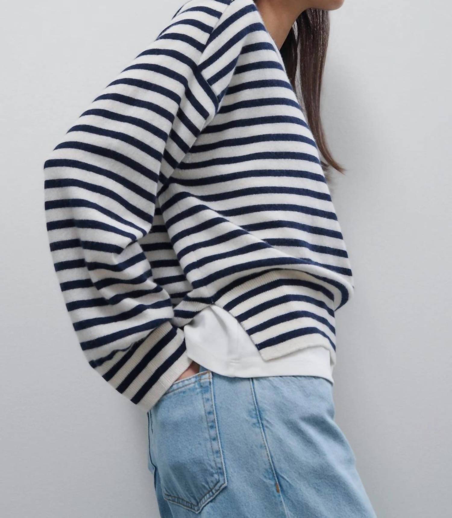 Stay warm and stylish in this versatile and effortlessly cool knitwear staple. Wear it alone or layered, it's the perfect sweater for the season and you'll wish you had it in every color. Experience ultimate comfort and style with the Crewneck Long Sleeve Sweater by CLOSED, crafted from luxurious 100% cashmere. This ivory, striped sweater features a relaxed fit, ribbed cuffs at the neckline, and a sleek straight sleeve and hem. The side slits add an elegant touch, enhancing its minimalist appeal. Closure: Pull on. Care: Machine wash.
