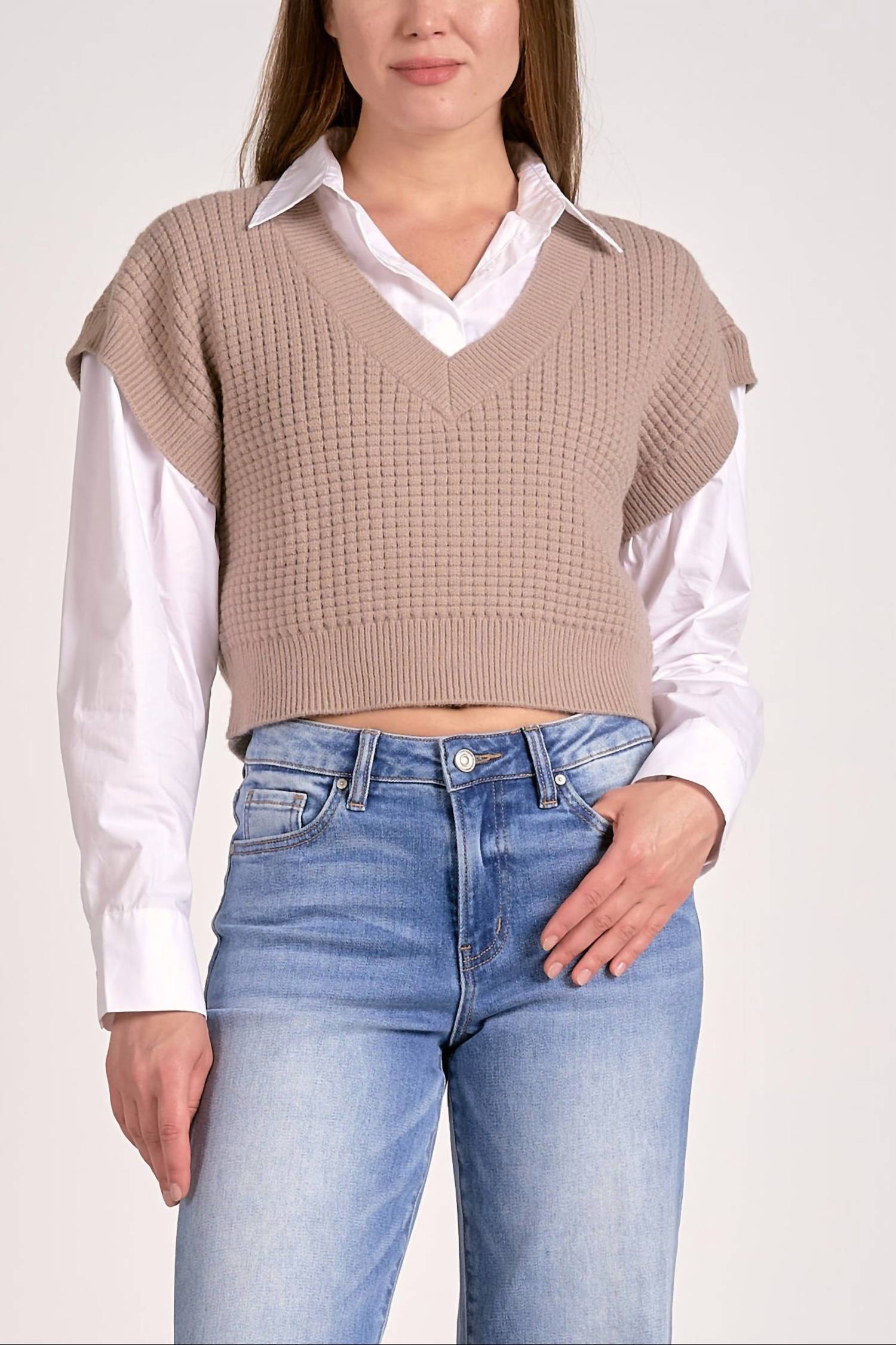 Wear this v-neck sweater with your favorite denim for the perfect fall look. Embrace effortless style and comfort with the ELAN "Hidden" Sweater in taupe, designed for those who value chic versatility. This cozy piece features a distinctive long-sleeve design with a textured pattern and a classic collar neckline, perfectly complemented by a stylish cropped length that pairs beautifully with high-waisted bottoms. The sweater's composition promises warmth while the button closure adds a touch of refinement. Care instructions include machine wash in cold water on a gentle cycle, hang dry to prevent shrinkage, and warm iron if needed.