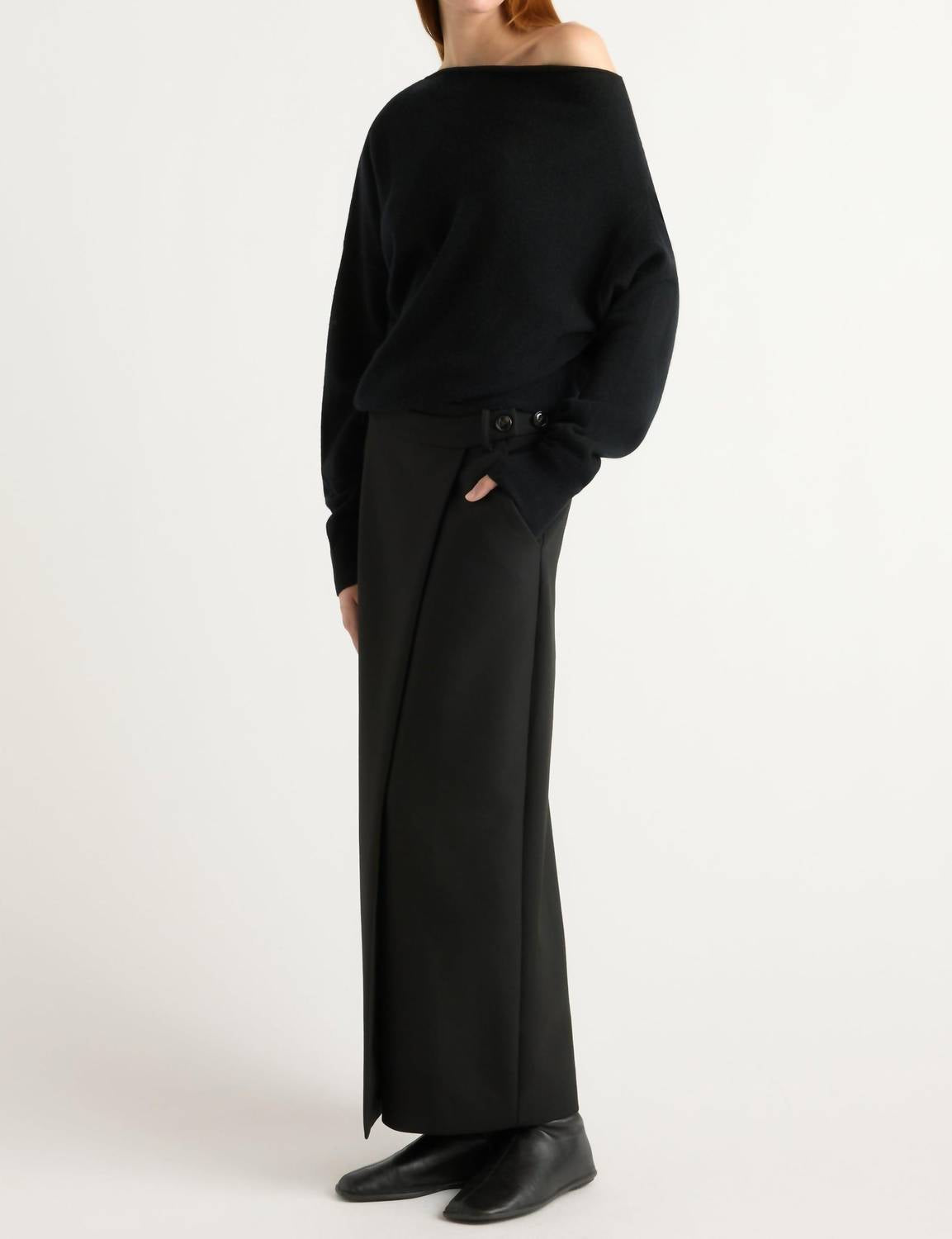 Show a little skin in this perfectly designed off-the-shoulder sweater. Introducing the Off The Shoulder Long Sleeve Sweater by ELAN, a sophisticated addition to your evening wardrobe. Crafted from ultra-soft cashmere, this elegant piece in timeless black offers both comfort and versatility. With a pull-on closure and minimalist design, it's perfect for layering or wearing as a statement piece. For maintenance, simply dry clean to ensure lasting luxury.