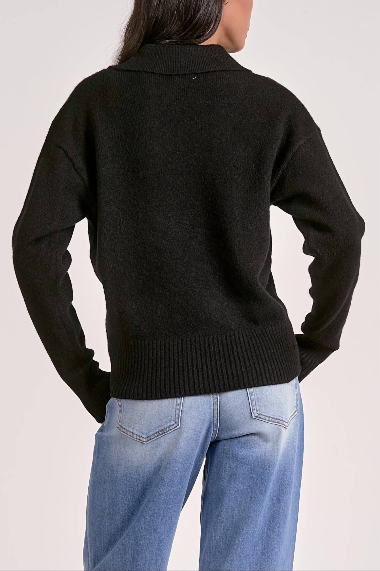 A timeless v-neck sweater that works season after season. Introducing the "Transformed" Sweater by ELAN, crafted for both comfort and sophisticated style. This women's black polo sweater features long sleeves and a structured collar with a clean V-neckline, making it ideal for spring holiday events. Designed with a solid pattern and pull-on closure, it offers ease of wear and versatility for various occasions. Care for this stretchy piece by machine washing it on a cold, gentle cycle, hang drying to prevent shrinkage, and using a warm iron if needed.