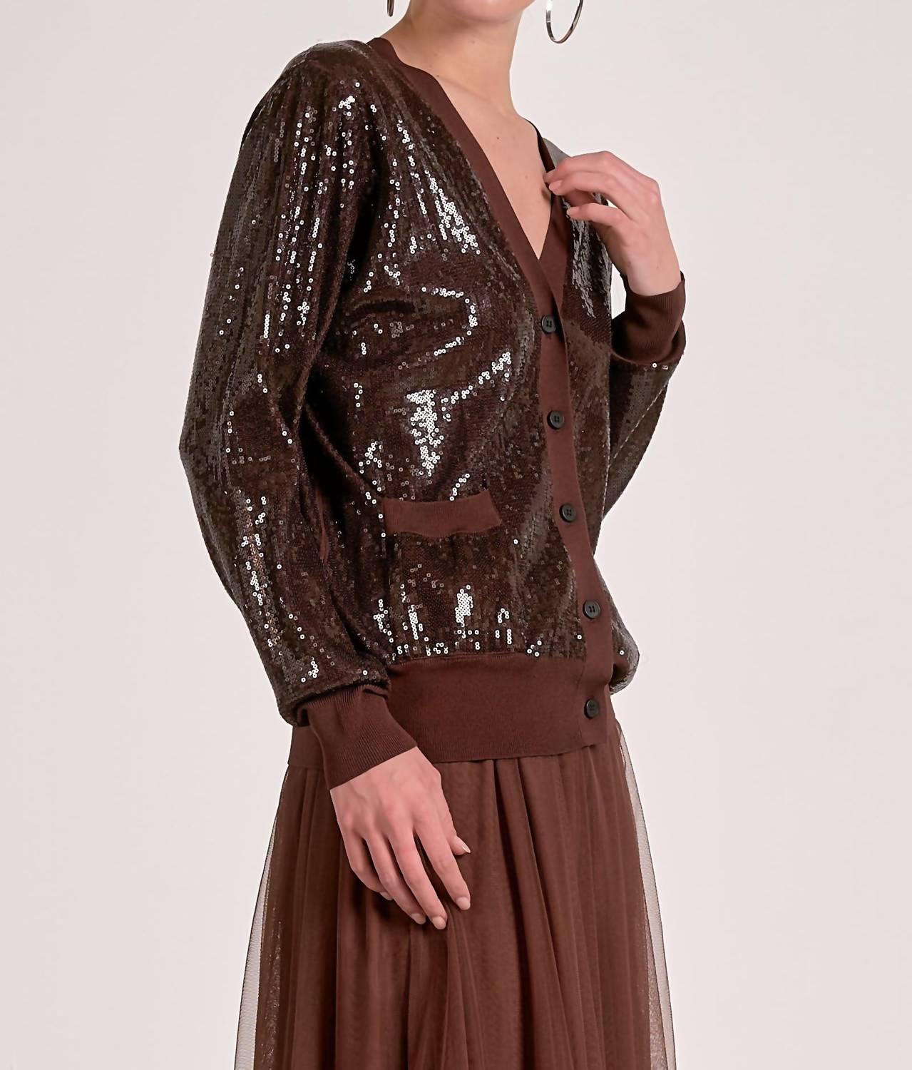 You'll be reaching for this comfy and classic v-neck sweater all season long. Experience the elegance of the Women's Harlow Cardigan by ELAN, a minimalist choice for fall dinner parties. With long sleeves and a solid brown color, this v-neck cardigan offers a pull-on design for effortless chic. Perfect for those who appreciate a refined, simple aesthetic, it seamlessly fits into any wardrobe as a versatile staple. Embrace the minimalist trend with this essential piece that leaves pockets and extensive care instructions behind for straightforward style.