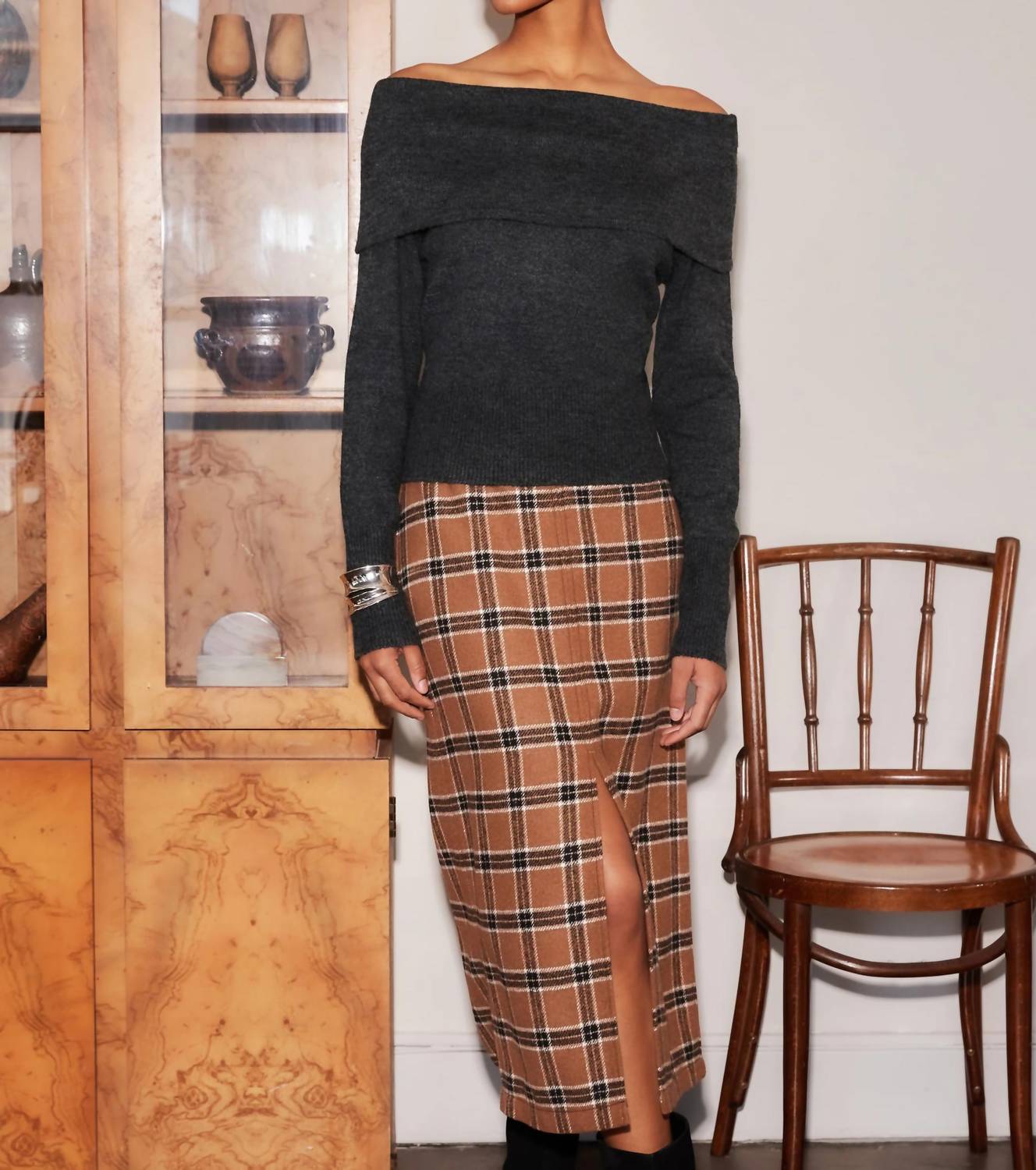 Show a little skin in this perfectly designed off-the-shoulder sweater. Introducing the Monique Off The Shoulder Sweater by Fifteen Twenty, a must-have in charcoal for your preppy fall wardrobe. This women's sweater features a sleek, modern silhouette with long set-in sleeves and a wide fold-over neckline. Crafted from a soft blend of 74% acrylic, 22% polyester, and 4% spandex, this imported piece is designed for style and comfort. Closure: Pull on.