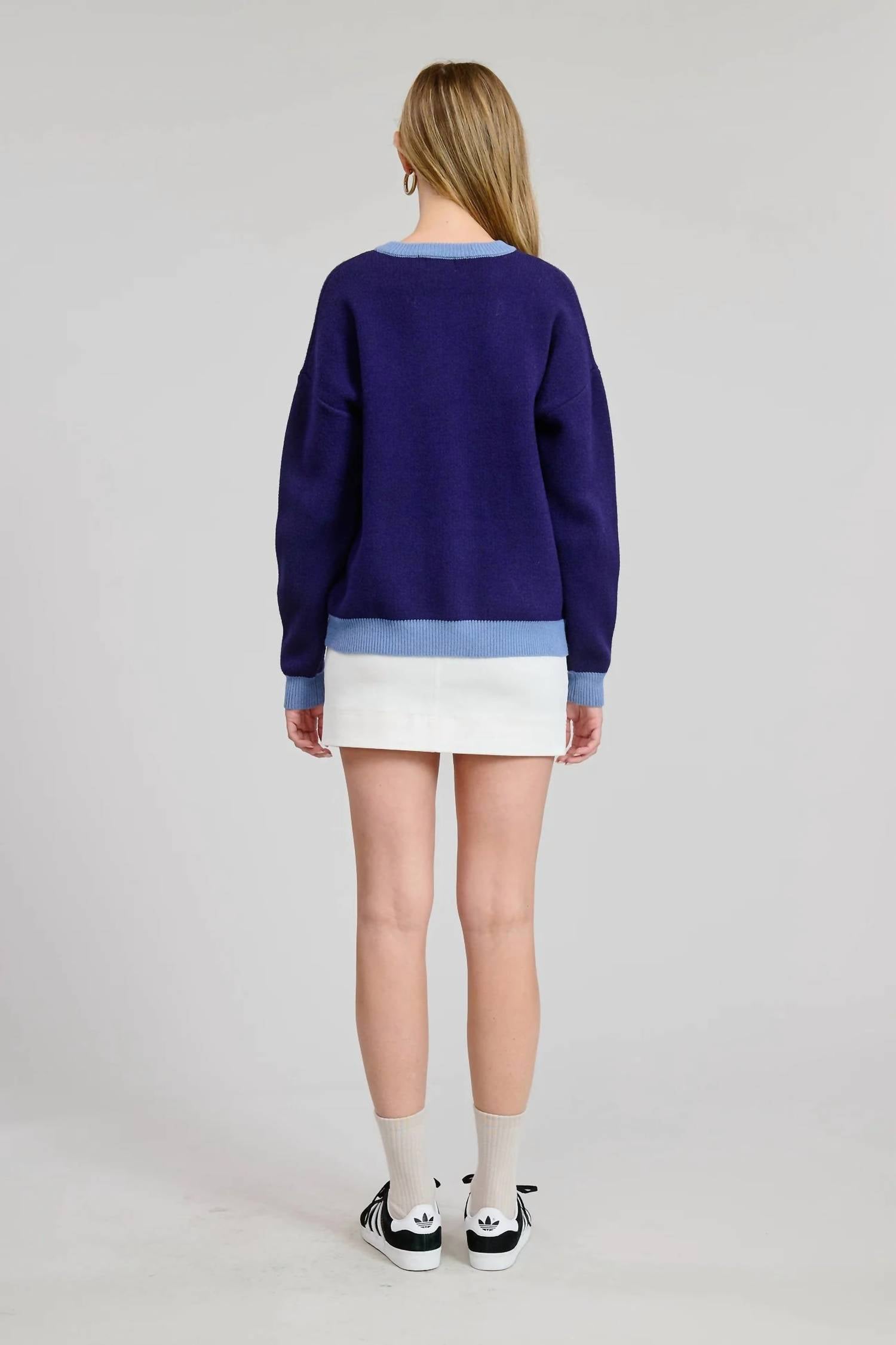 Experience the perfect blend of comfort and style with this trendy crew neck sweater, designed to effortlessly elevate your wardrobe. Pair it with your favorite denim and loafers for the perfect look. Wrap yourself in playful style with the Schnauzer Doggy Crewneck Sweater by FLAT WHITE, an eye-catching navy pullover for women. This long sleeve sweater features a charming graphic pattern and a comfortable pull-on closure, perfect for your travel ensembles. Crafted from 50% Viscose, 28% Polyester, and 22% Nylon, this sweater ensures a soft and cozy feel. Easy to care for, simply machine wash and tumble dry to keep this preppy piece looking its best.