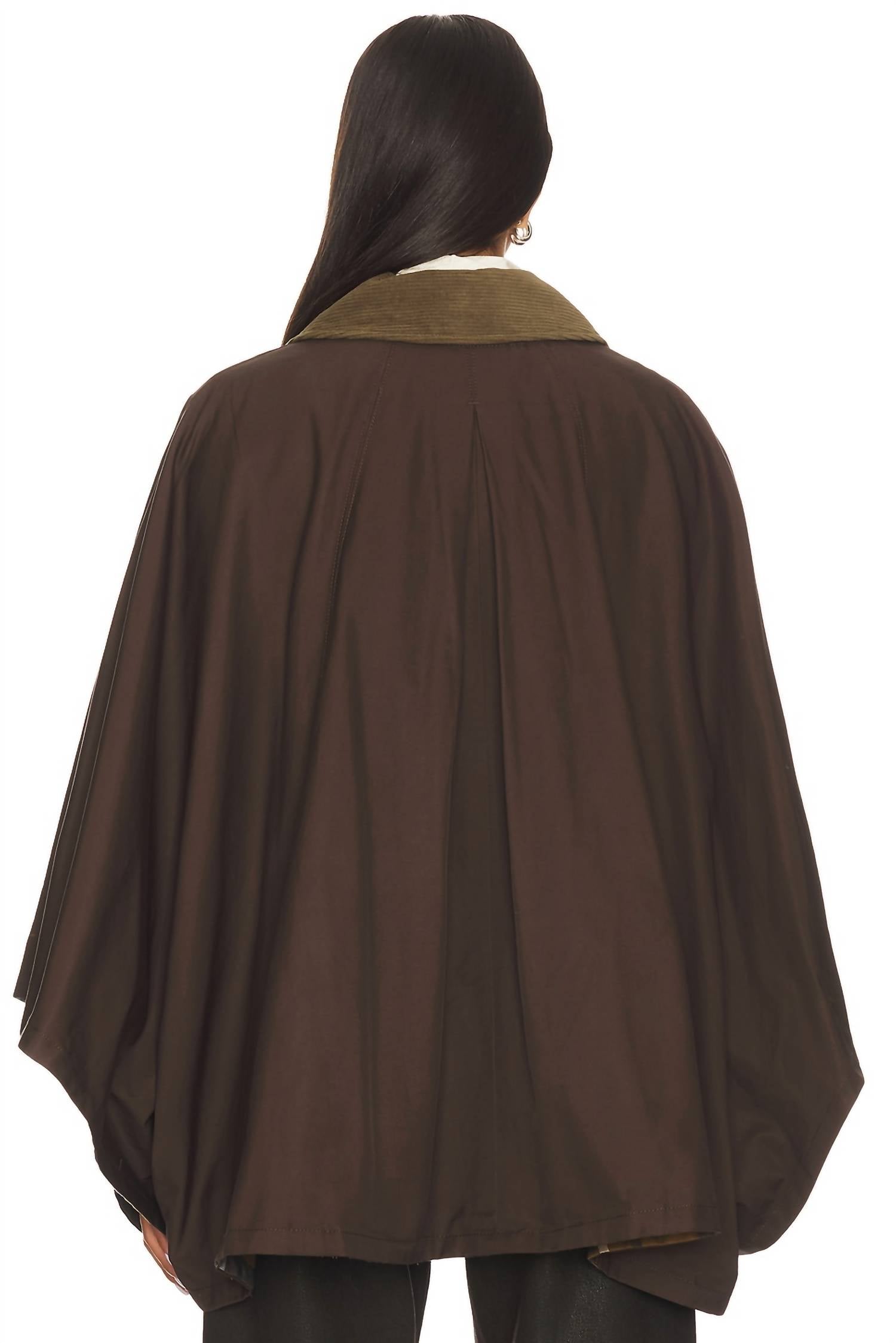 This cardigan will be a sweater-rotation favorite. Elevate your winter wardrobe with the Free People Bailey Cape Top in rich Italian Mocha. This oversized cardigan features long sleeves and a bold collar, crafted from a comfortable cotton blend consisting of 60% cotton and 40% nylon. With a button closure and drawstrings, it's both stylish and practical, offering solid pattern versatility. Measurements for size X-Small/Small include a chest of 48 inches and length of 30.5 inches. Care for this piece is simple: machine wash cold and hang dry.