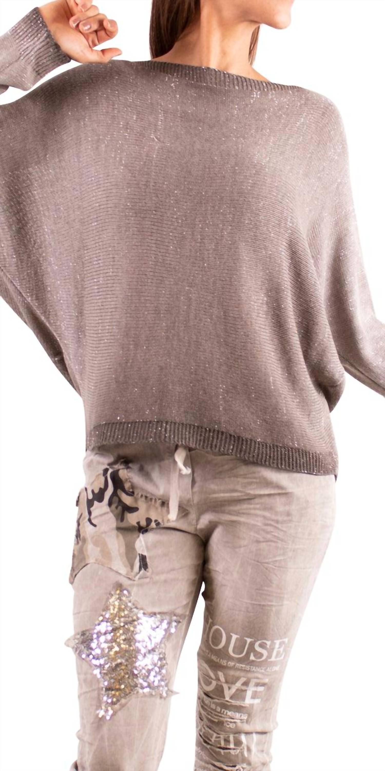 Experience the perfect blend of comfort and style with this trendy crew neck sweater, designed to effortlessly elevate your wardrobe. Pair it with your favorite denim and loafers for the perfect look. Experience effortless style with the Argento Long Sleeve Sweater by GIGI MODA, in a rich chocolate hue, perfect for the fall season. This sweater features a chic boatneck design with long sleeves and a luxe metallic thread integrated into its washed look, adding a subtle shimmer to your wardrobe. Made from 45% Acrylic and 55% Modal, it offers both comfort and elegance. Crafted in Italy, the sweater boasts a convenient zip closure at the back and requires hand washing, to be laid flat to dry. Available in sizes XS to XL, fitting most body types. Ideal for travel and Thanksgiving occasions.