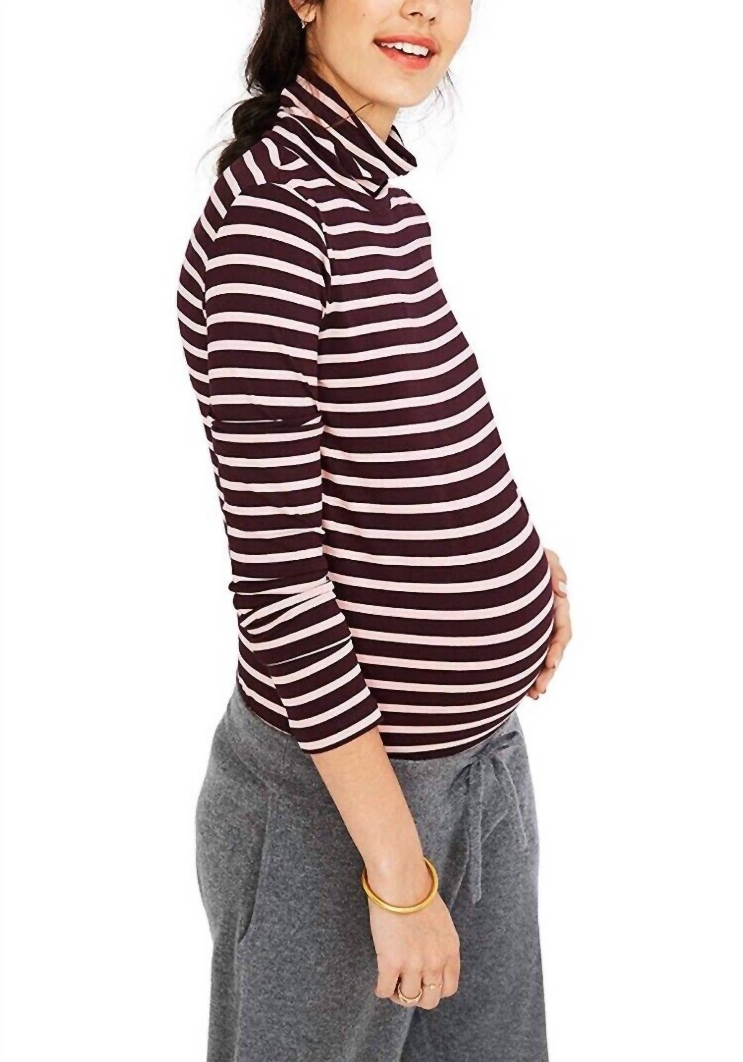 Fit to perfection and effortlessly chic. Introducing the Hatch Maternity Jersey Turtleneck Sweater, a stylish and comfortable staple for your maternity wardrobe. This long sleeve turtleneck is crafted from 92% rayon and 8% spandex, offering a flattering fit with its approximately 26.5" length from shoulder to hem. Made for the modern maternity style, it's pull-on closure design ensures ease of dressing, while its chic Taylor/Rose stripe pattern adds a touch of elegance. This imported piece is machine washable, ensuring convenience and easy care.