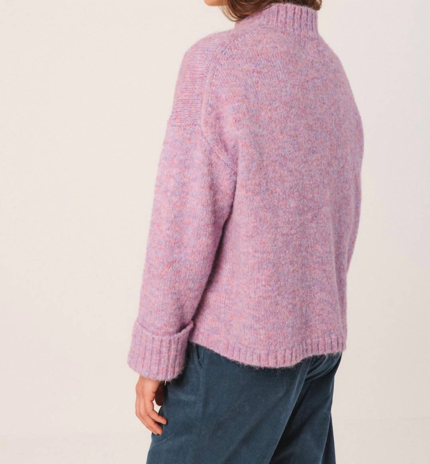 Fit to perfection and effortlessly chic. Elevate your Fall wardrobe with the Mockneck Textured Sweater by Indi & Cold, a must-have in a beautiful lavender shade. Crafted with long sleeves, this sweater is composed of 59% recycled polyester, 21% polyamide, 11% polyester, 8% wool, and 1% elastane, offering a luxurious feel with a sustainable edge. Designed for women, this streetwear essential has a pull-on closure and is perfect for layering during your Thanksgiving travels. For best results, hand wash and lay flat to dry.