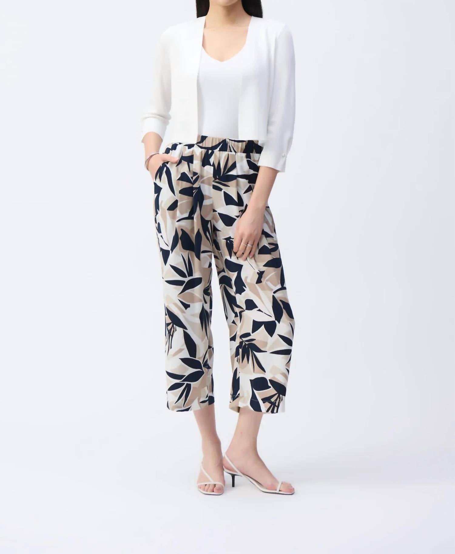 Elevate your spring wardrobe with the Joseph Ribkoff Sweater Shrug in a textured vanilla hue, perfect for travel and workwear. This sophisticated piece features three-quarter pleated sleeves adorned with a pearl brooch for added elegance and a straight silhouette for a flattering fit. Crafted from a dry yarn viscose blend composed of 65% viscose rayon and 35% nylon, this shrug offers a classic V-neck and an open front design. The pull-on closure ensures effortless wear, while the meticulous care instructions recommend hand washing in cold water and laying flat to dry in the shade.