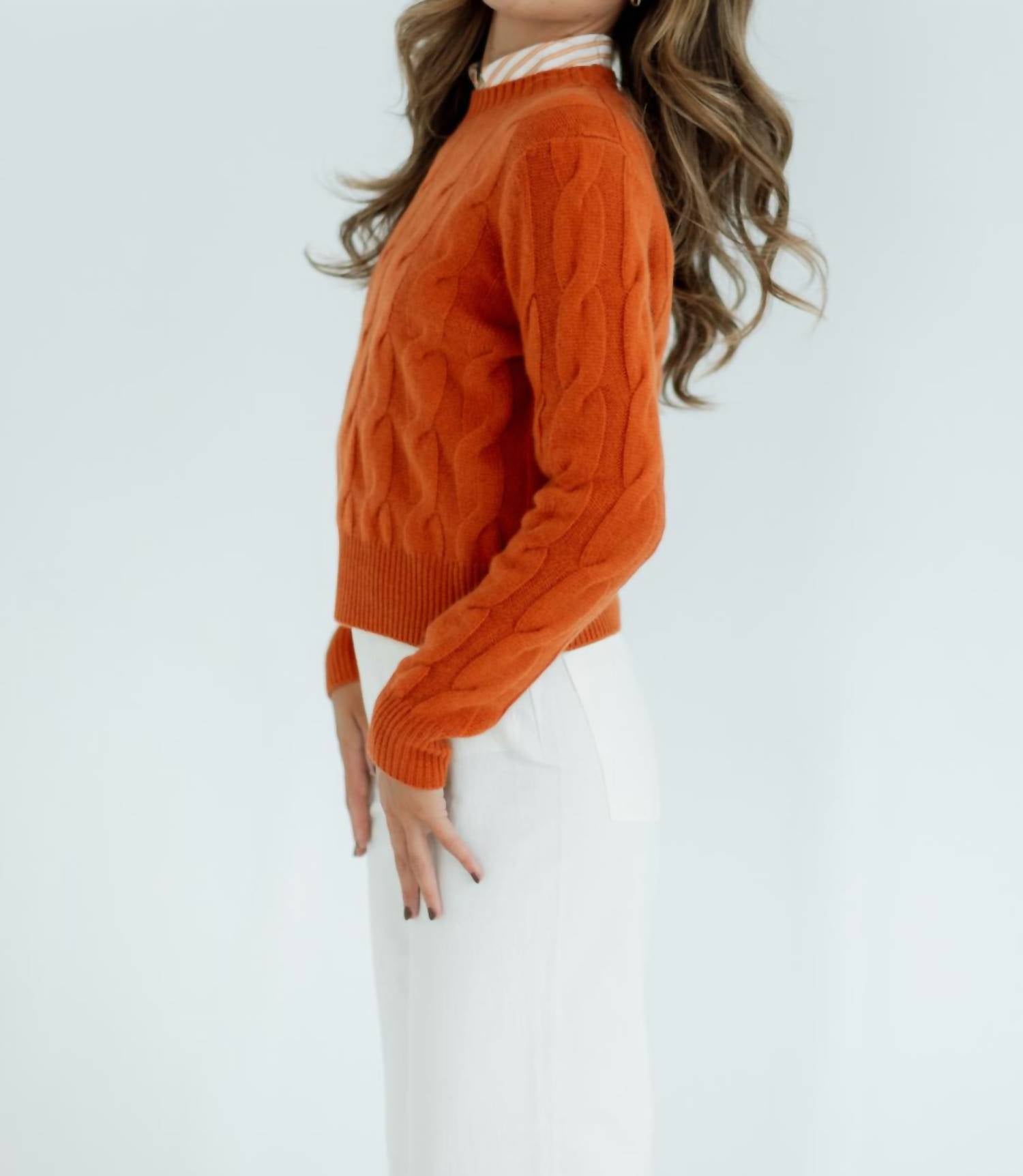 The ultimate go-to sweater, expertly crafted to provide the perfect combination of warmth and style. Its classic design and soft fabric make it a must-have addition to your wardrobe. Elevate your wardrobe with the Luxe Cable Crew Sweater by Kinross, a sophisticated piece in the rich Brandy hue. This women's long sleeve sweater is crafted from 100% pure cashmere, offering a textured design that exudes timeless elegance. Featuring a crewneck and a pull-on closure, it ensures a flattering and comfortable fit. Care: Hand wash and lay flat to dry for optimal longevity.
