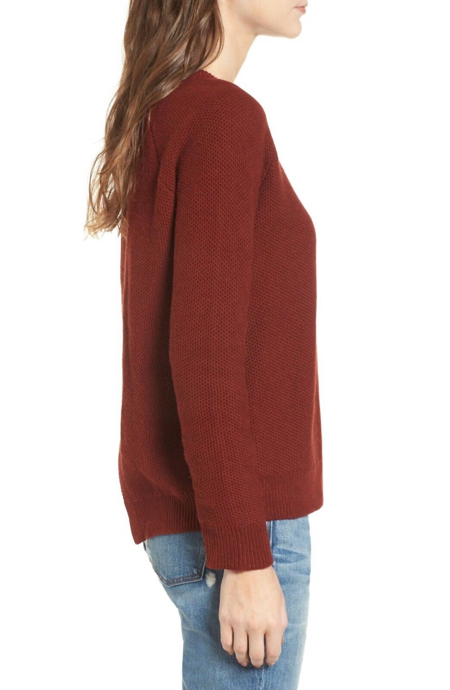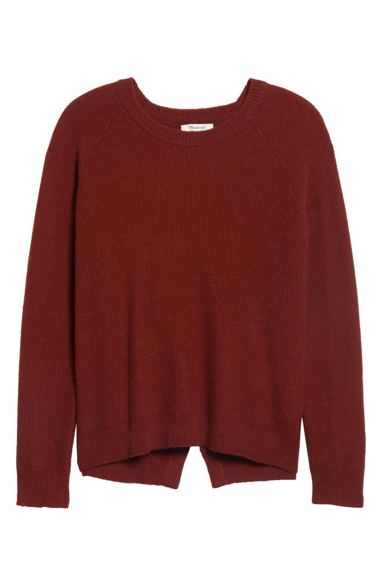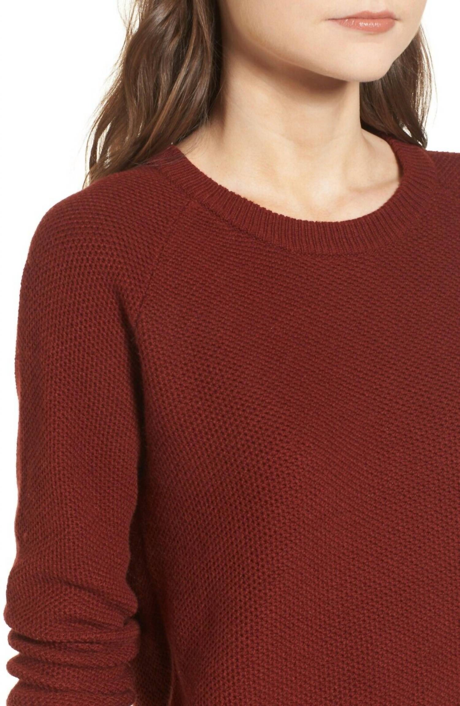 Experience the perfect blend of comfort and style with this trendy crew neck sweater, designed to effortlessly elevate your wardrobe. Pair it with your favorite denim and loafers for the perfect look. The Province Cross Back Pullover Sweater by Madewell is a stylish choice for a relaxed yet chic look. With long sleeves and crafted from a soft cotton blend of 62% cotton, 20% viscose, and 18% polyamide, this sweater features an intriguing crossover back detail allowing you to layer creatively or flaunt a hint of skin. Length ranges between 20" to 23", providing versatile wear. Its solid burnt mahogany hue pairs effortlessly with your wardrobe essentials. The sweater is best cared for with hand washing to maintain its cozy fit and texture.