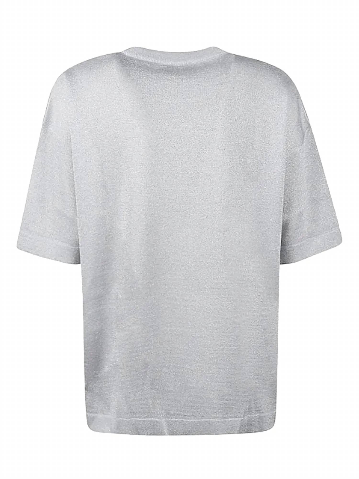 The ultimate go-to sweater, expertly crafted to provide the perfect combination of warmth and style. Its classic design and soft fabric make it a must-have addition to your wardrobe. Elevate your wardrobe with the Women's Crewneck Sweater by Missoni, a minimalist piece in shimmering silver. Designed with short sleeves and crafted from a luxurious composition of 88% rayon and 12% metal fiber, this sweater boasts an oversized fit for ultimate comfort. Featuring a solid pattern, this pull-on garment is perfect for fall travel occasions. To maintain its quality, machine wash and lay flat to dry.