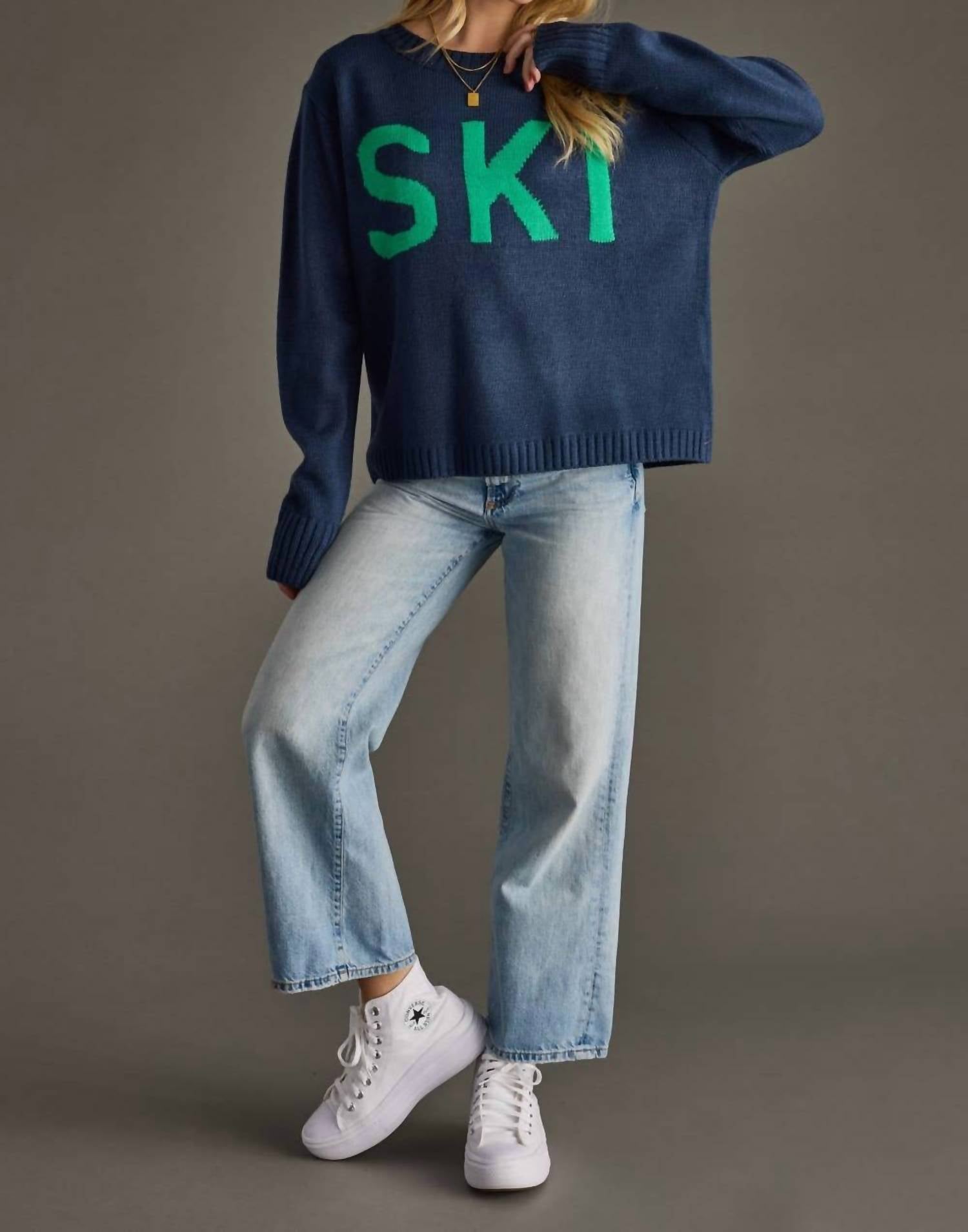 The ultimate go-to sweater, expertly crafted to provide the perfect combination of warmth and style. Its classic design and soft fabric make it a must-have addition to your wardrobe. Discover the Ski Sweater by Panache Apparel, a winter essential that combines minimalist elegance with practicality. This navy long-sleeve sweater features a solid knit construction that ensures warmth without added bulk and a classic crewneck design. Closure: Pull-on. Perfect for Thanksgiving gatherings or holiday parties, this versatile piece can be layered or worn standalone for various cold-weather occasions.