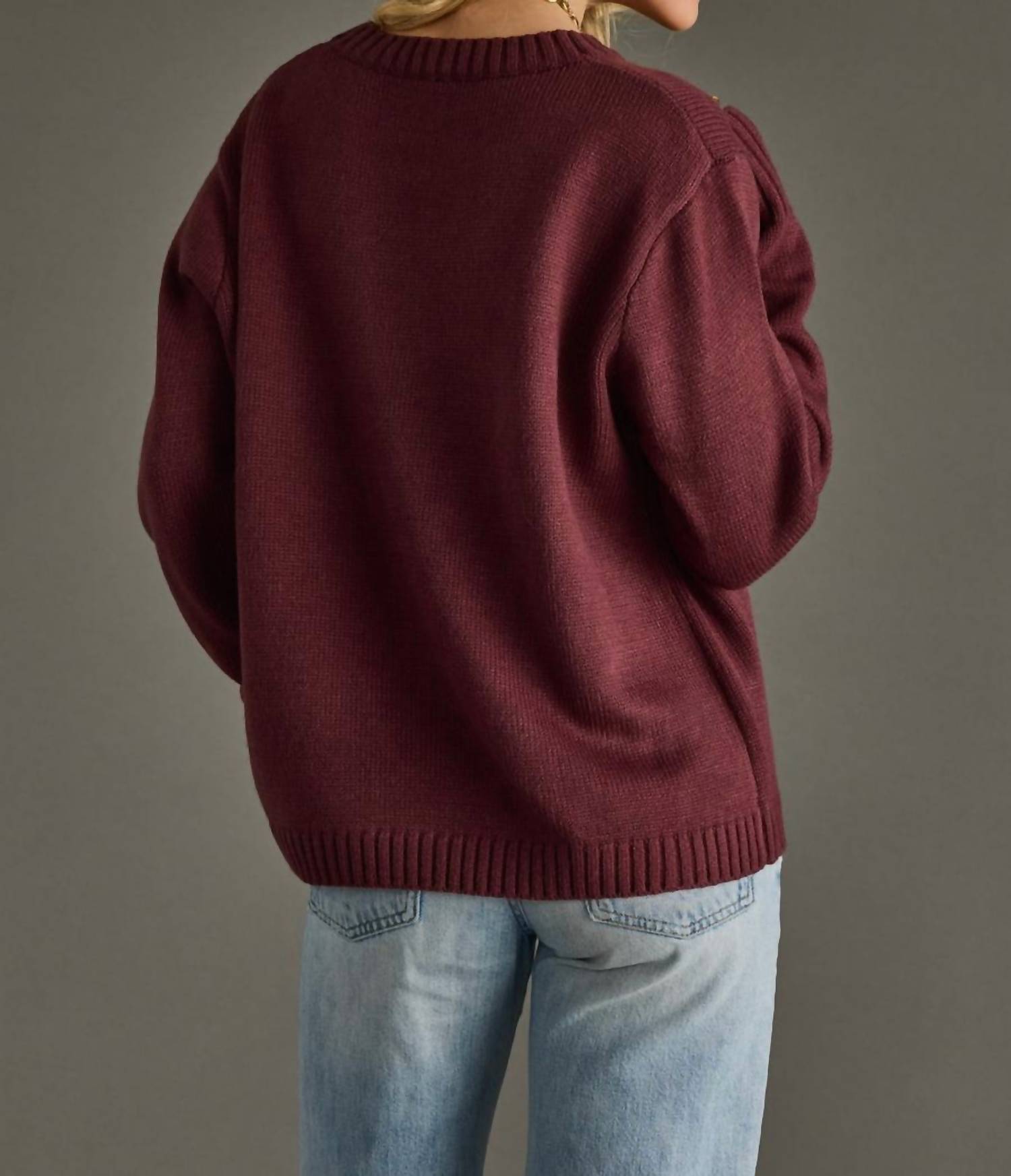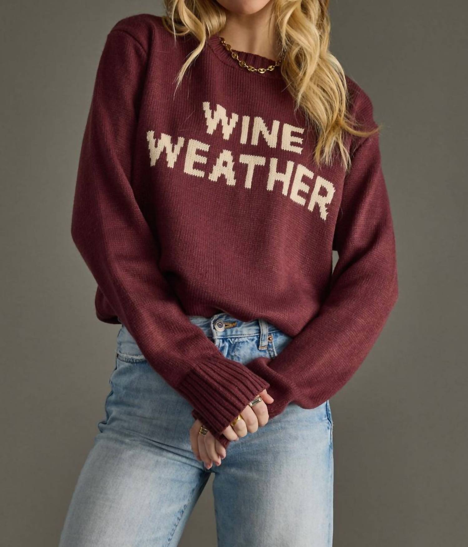 Experience the perfect blend of comfort and style with this trendy crew neck sweater, designed to effortlessly elevate your wardrobe. Pair it with your favorite denim and loafers for the perfect look. Introducing the Weather Sweater by Panache, a stylish wine-hued addition to your fall streetwear collection. Crafted from soft acrylic, this women's crewneck sweater features a bold graphic pattern. Designed with long sleeves for added warmth and comfort, it offers easy wear through a convenient pull-on closure. Perfect for back-to-school season, this piece effortlessly blends style and functionality.