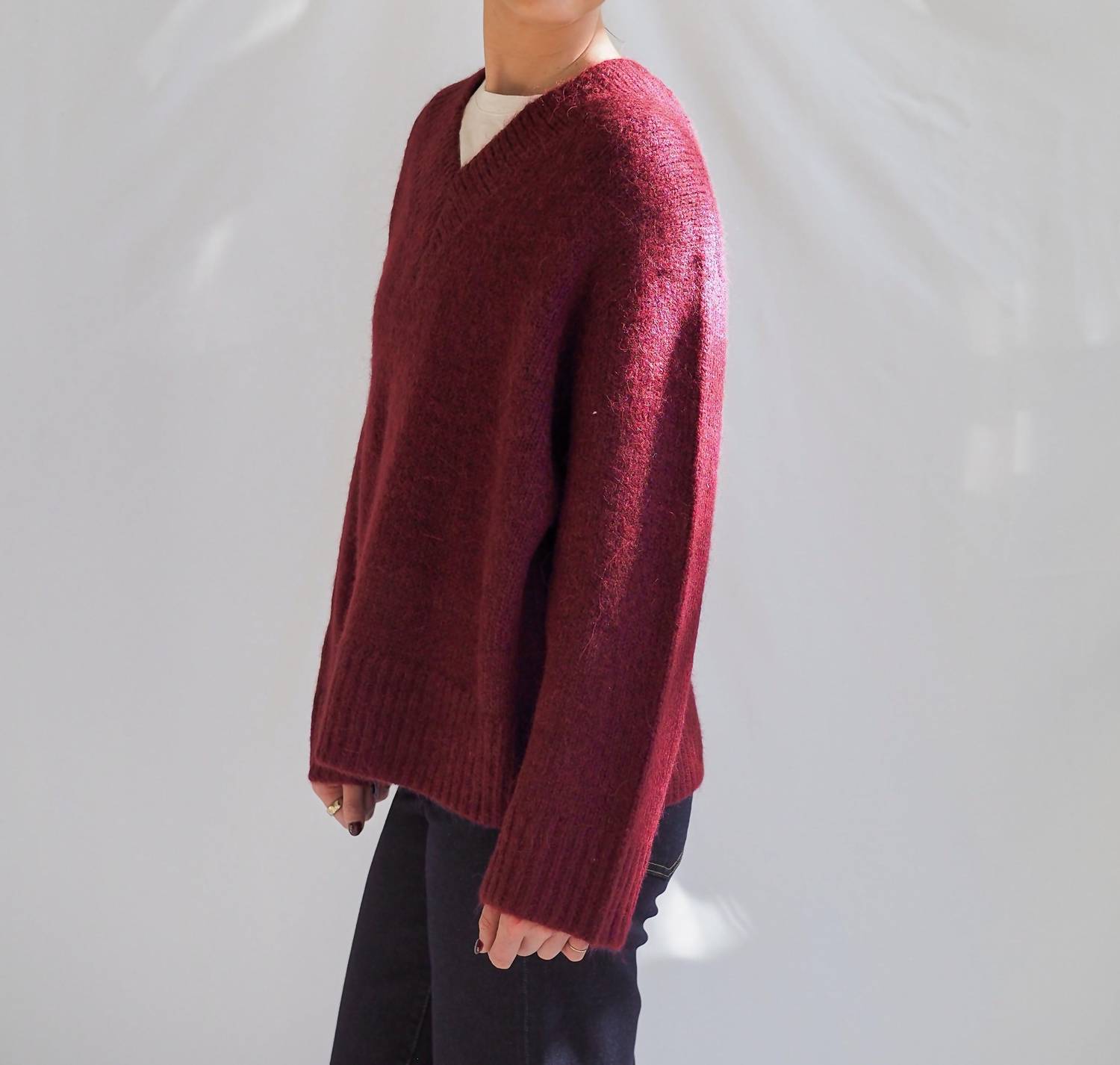 Wear this v-neck sweater with your favorite denim for the perfect fall look. Discover refined comfort with the Talia V-neck Sweater by PISTOLA, crafted for minimalist style in a rich Claret shade. This long-sleeve piece features a luxurious knit with a textured finish and a flattering V-neckline, offering just the right stretch for a cozy fit. Made from a premium Nylon blend with Acrylic, Polyester, Alpaca, and Wool, it ensures warmth and elegance for fall occasions. Designed with a pull-on closure, it requires hand washing and laying flat to dry—perfect for those Thanksgiving travels or any relaxed outing. Model is 5'11" and wears a size S.