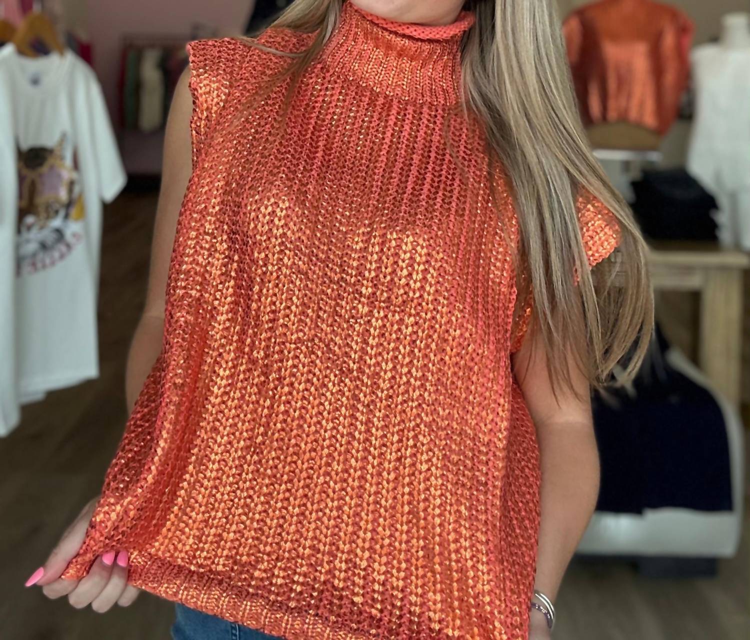 She + Sky - Metallic Foil Sleeveless Turtleneck Sweater Top