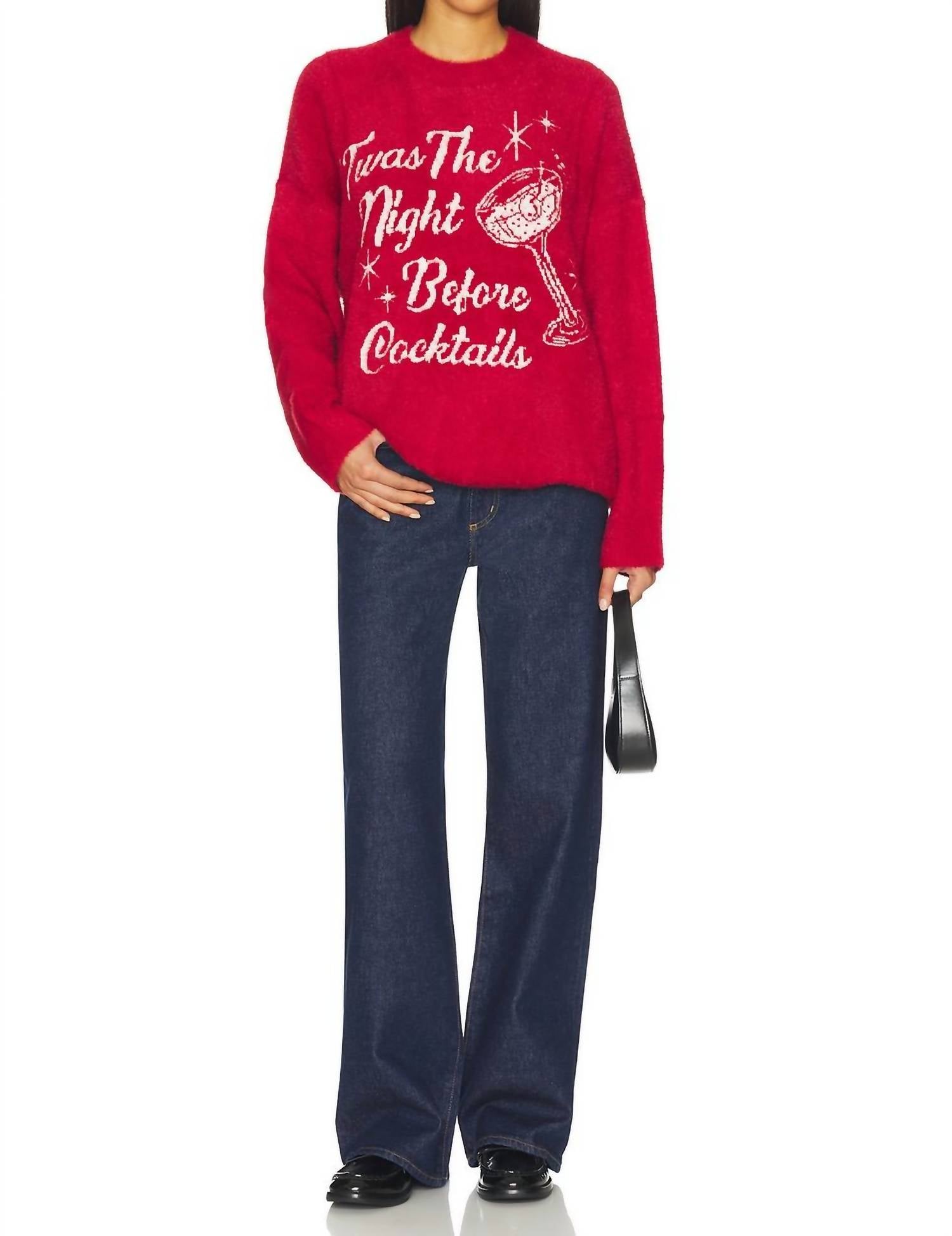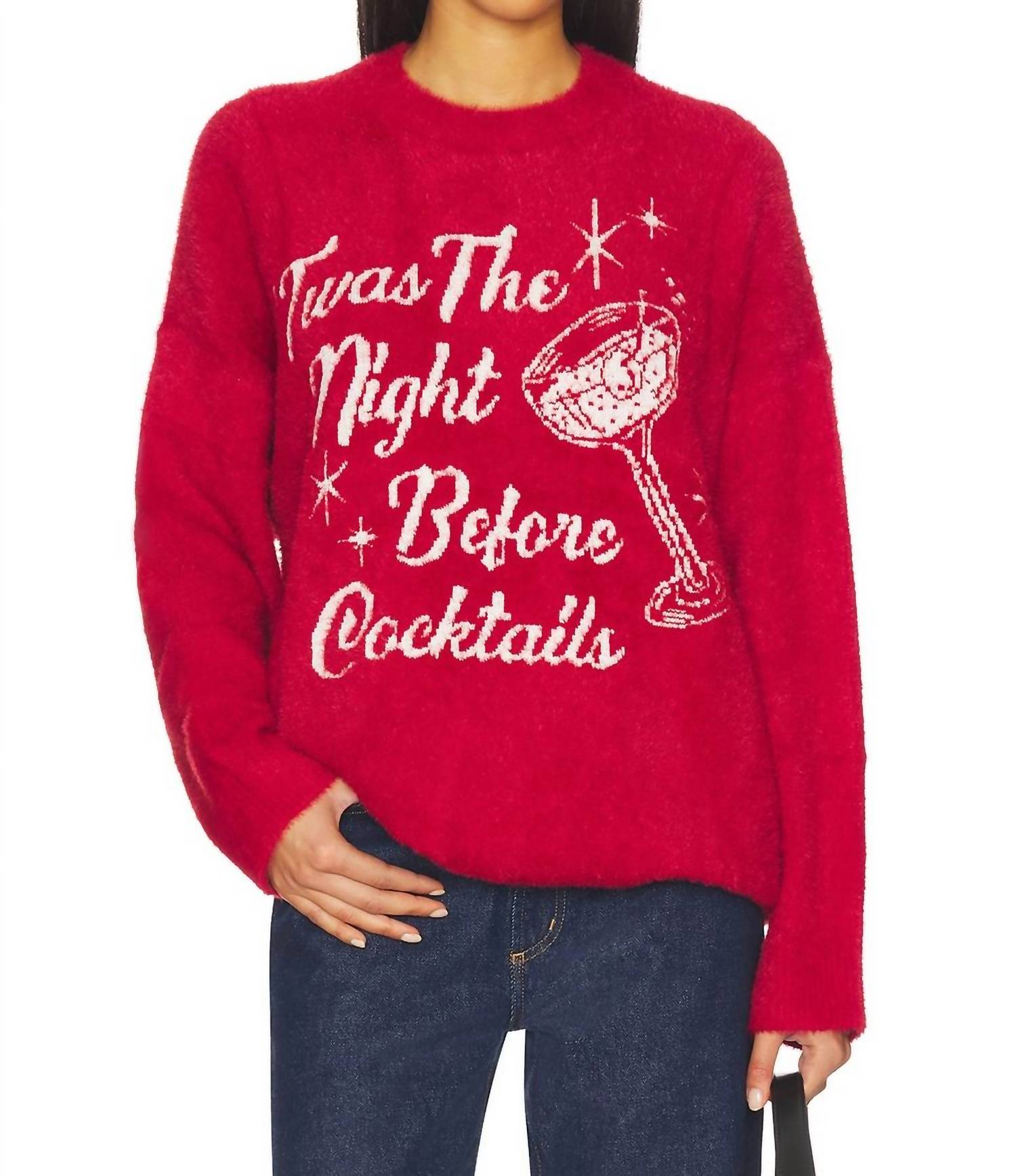 Stay warm and stylish in this versatile and effortlessly cool knitwear staple. Wear it alone or layered, it's the perfect sweater for the season and you'll wish you had it in every color. Upgrade your winter wardrobe with the Classic Crewneck Sweater by Show Me Your Mumu in a festive "Twas the Night" design. This oversized, long sleeve piece is crafted from a 77% nylon and 23% acrylic blend, featuring a contrast retro stitching design. Imported, it offers effortless style with its pull-on closure. For maintenance, simply hand wash cold to keep it looking fresh for the holiday season.
