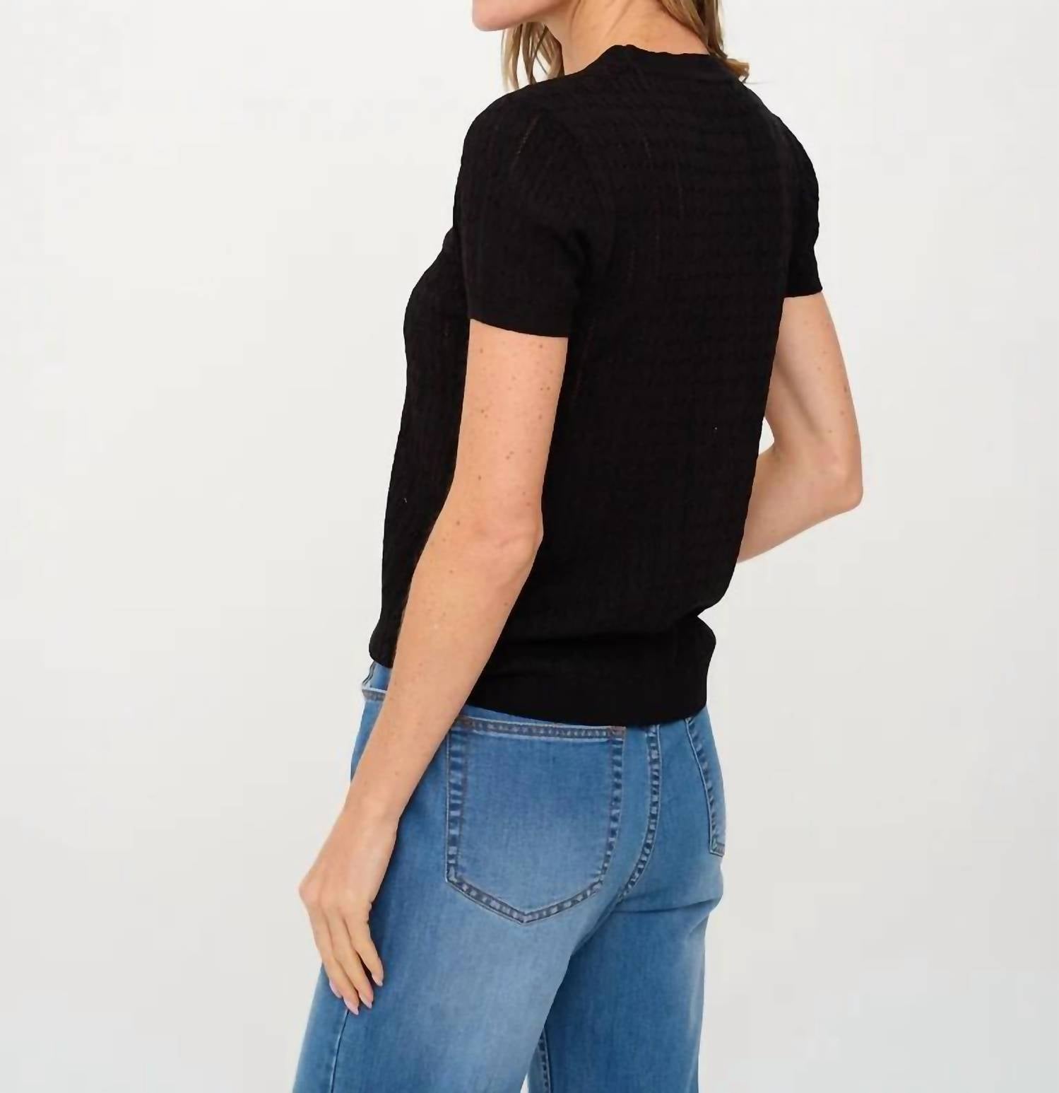 The ultimate go-to sweater, expertly crafted to provide the perfect combination of warmth and style. Its classic design and soft fabric make it a must-have addition to your wardrobe. The Natasha Cable Light Weight Sweater Top by SIX/FIFTY is a chic and versatile addition to any wardrobe. Designed with short sleeves and crafted from 100% viscose, this sweater top ensures comfort and breathability in a solid black hue. Its pull-on closure and classic crewneck make it an effortless staple for fall workwear or festive occasions like holiday parties. For care, simply machine wash and tumble dry as needed.