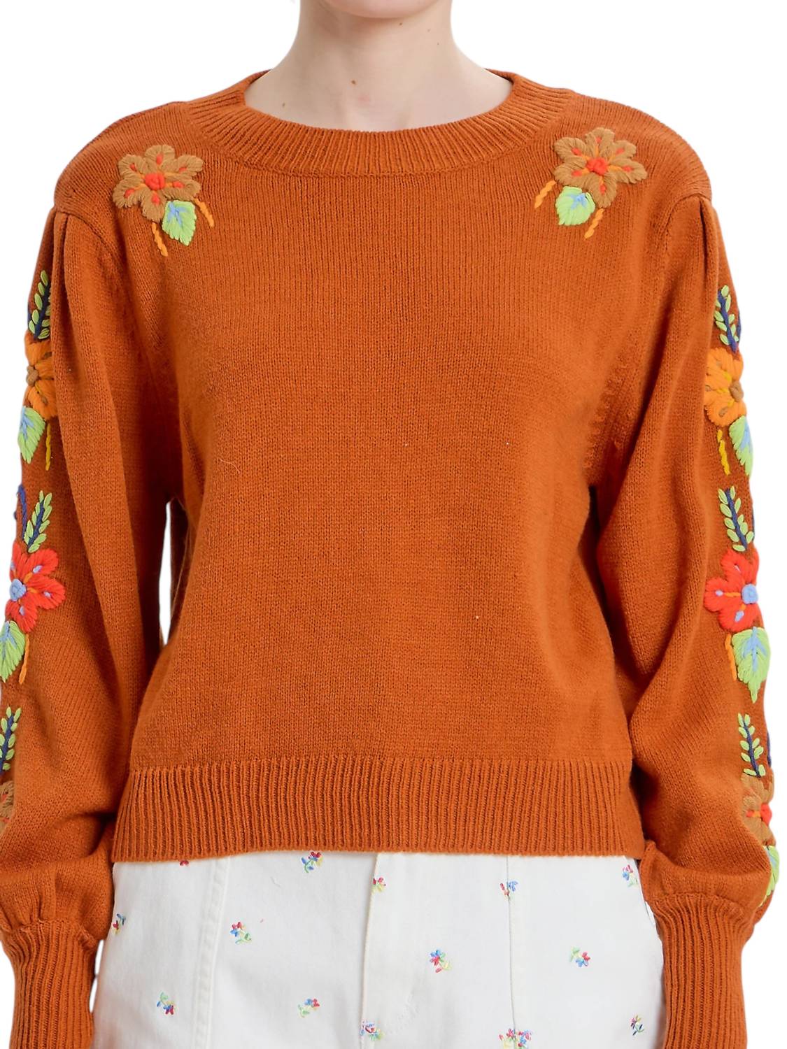 Stay warm and stylish in this versatile and effortlessly cool knitwear staple. Wear it alone or layered, it's the perfect sweater for the season and you'll wish you had it in every color. Introducing the Embroidered Crew Neck Sweater by SOMETHING NAVY, a refined choice for your spring wardrobe in a striking burnt orange shade. Featuring long sleeves and a textured pattern, this minimalist sweater is perfect for a dinner party. Closure: Pull on.