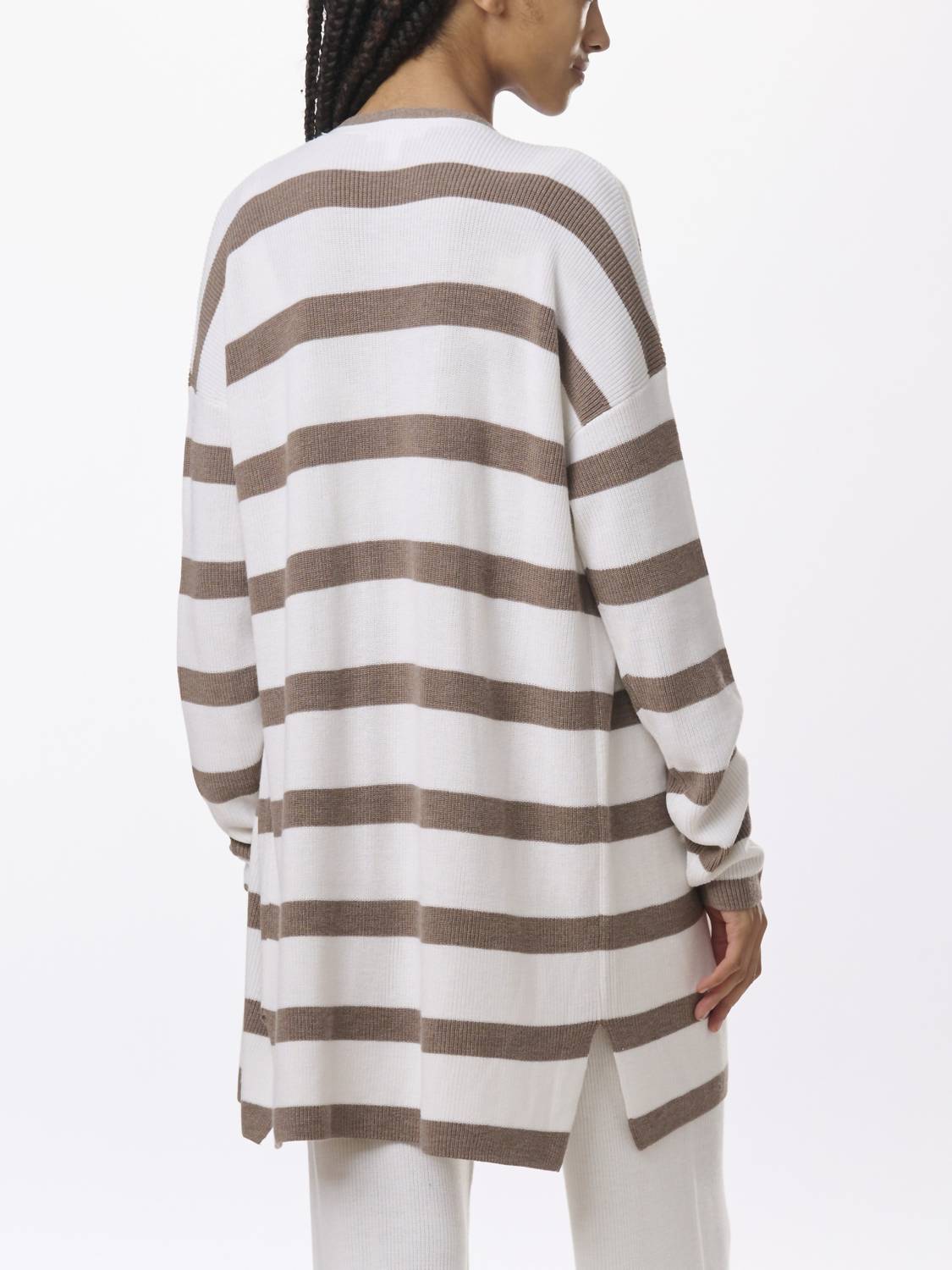 Throw this adorable cardigan over any cami or tank top. Meet the Octavia Stripe Open Cardigan by Splendid, a chic layering piece in Pine Bark Stripe perfect for warm-weather layering. This long sleeve cardigan features an open-front design with side slits and a stylish block stripe pattern, ideal to pair over denim, dresses, or swimwear. Crafted from a luxurious blend of 40% Viscose, 30% Nylon, 25% Polyester, and 5% Cashmere, it delivers comfort with sophistication. It requires dry cleaning to maintain its exquisite quality. Model wears size Small (5'10", 24" waist, 36" hips, 33" bust).
