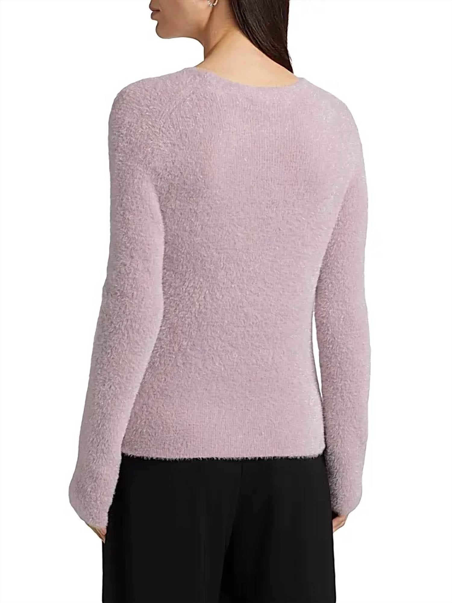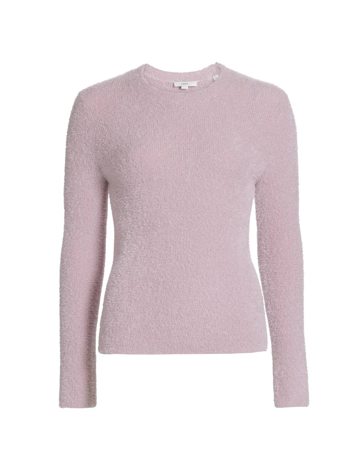 Stay warm and stylish in this versatile and effortlessly cool knitwear staple. Wear it alone or layered, it's the perfect sweater for the season and you'll wish you had it in every color. Vince presents the Metallic Eyelash Knit Sweater in a stunning Orchid Stone hue, perfect for your next travel adventure. This women's crewneck sweater features a trendy long sleeve design crafted from a nylon blend, offering both comfort and style. With its solid pattern and pull-on closure, it effortlessly enhances any spring ensemble. For care, simply hand wash and line dry to maintain its impeccable appearance.