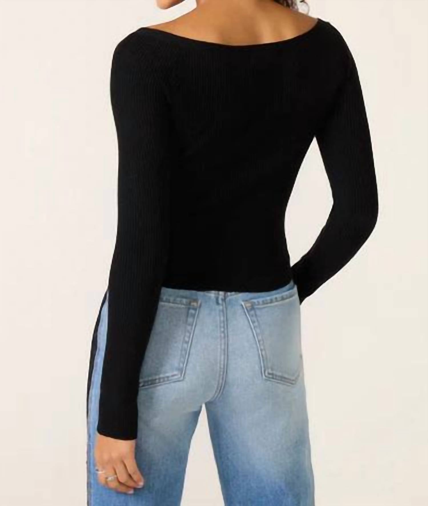 Show just the right amount of skin in the cutest sweater of the season. Introducing the Jovy Sweater Top by Z Supply, a sophisticated addition to your knitwear collection in timeless black. This off-the-shoulder piece features long sleeves and a cropped, fitted silhouette, enhancing its modern elegance. Composed of 49% Viscose, 28% Polyester, and 23% Nylon, it is textured with a soft rib knit and secured with front button closures. Measurements include a length of 18 ¼" from shoulder to hem. Care for this stylish top by hand washing it cold, laying it flat to dry, and avoiding wringing; iron on low heat when necessary. Perfect for fall occasions and Thanksgiving gatherings, this top captures minimalist trends with grace.