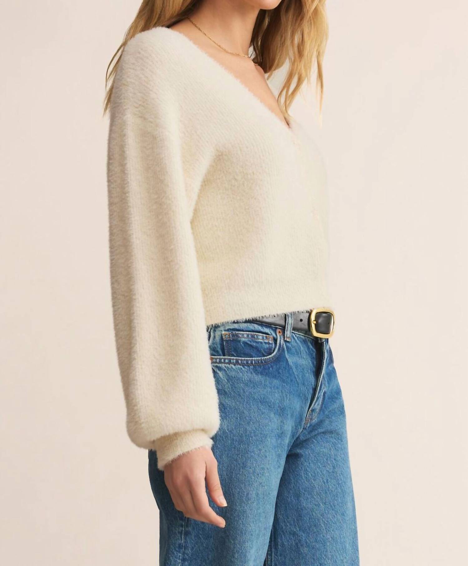 Wear this v-neck sweater with your favorite denim for the perfect fall look. Add a touch of winter magic to your wardrobe with the Sadira Fluffy Crop Cardigan by Z Supply in warm white. This cardigan features long sleeves and a chic V-neck, crafted from fluffy yarns composed of 85% nylon and 15% polyester. Designed with a cropped fit and button closure, it's a festive essential for layering throughout the season. To maintain its soft texture, hand wash cold separately and lay flat to dry or opt for dry cleaning.