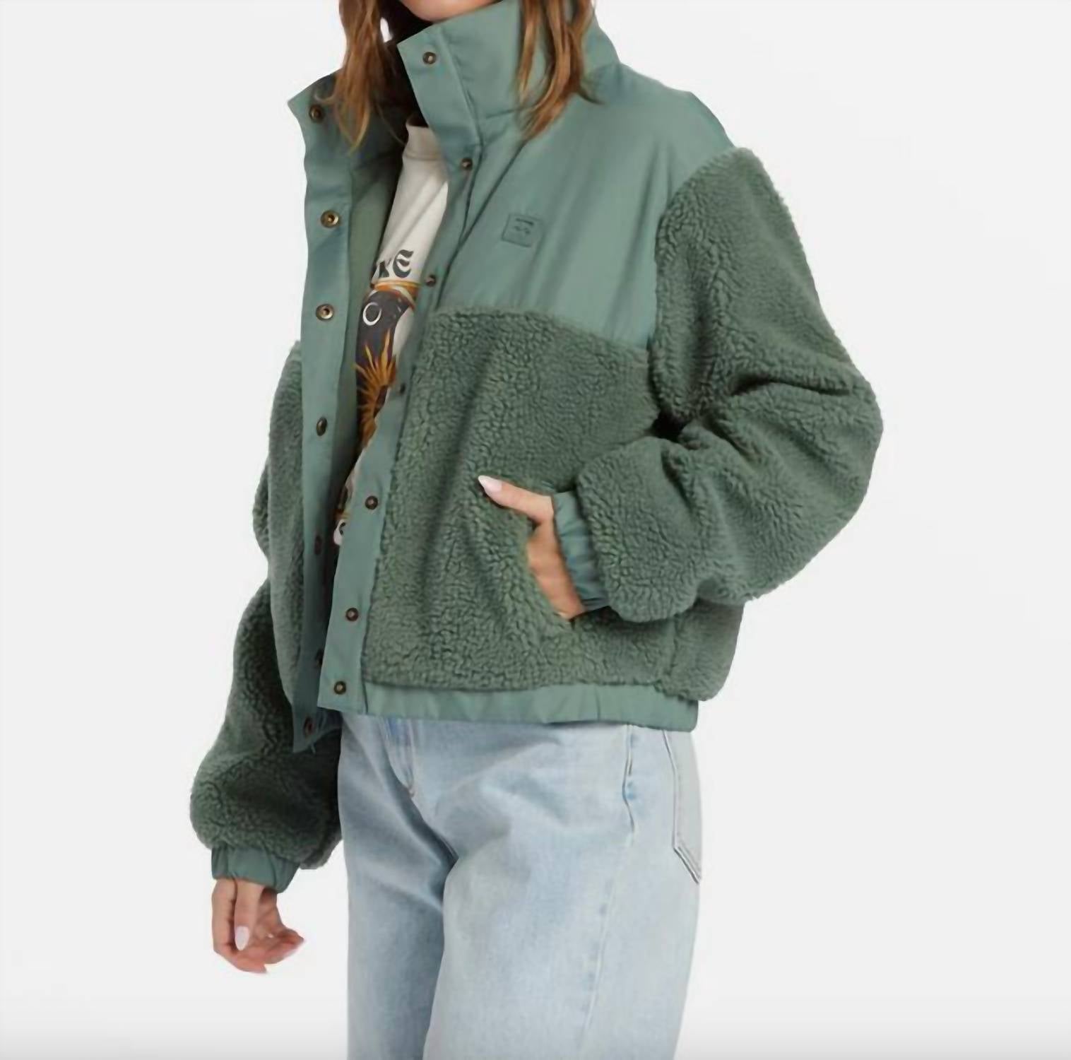 Colder weather means jacket season and we are loving everything about this timeless teddy jacket. Designed with long sleeves, this Teddy Jacket features a 50% polyester and 50% recycled polyester blend with a durable ripstop upper fabric. Enjoy superior weather protection with its Durable Water Repellent treatment and the warmth of a polar fleece lining. The jacket boasts a snap front closure, waist pockets with a fleece pocket bag, and an encased elastic bottom opening for added comfort. Machine wash.