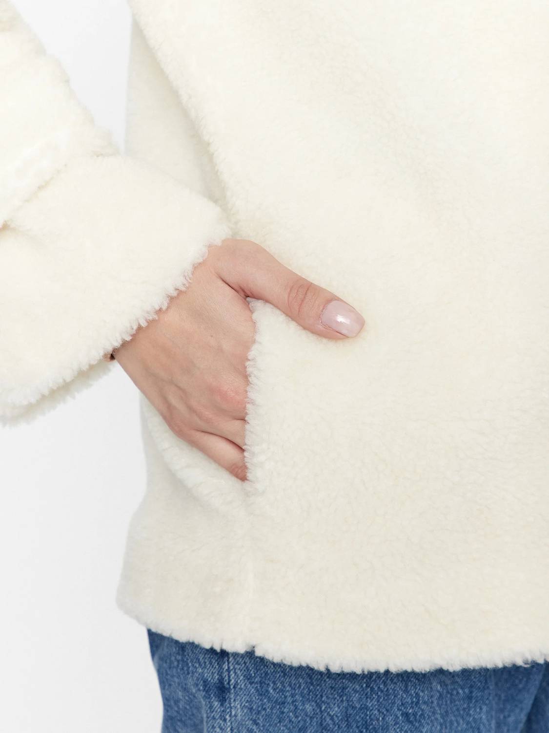 Downright adorable and so comfortable you won't want to take it off. This teddy jacket is a fan favorite. Discover the Sistema Fluffy Coat by MARELLA, an exceptional wool blend piece crafted in Italy, perfect for embracing chilly days in style. With long sleeves, a lapel collar, and dropped shoulders, this coat provides a contemporary touch to classic design. Its textured cream finish is complemented with practical pockets and a secure button closure. Composition: 84% polyester, 16% wool. Care Instructions: Dry cleaning recommended.
