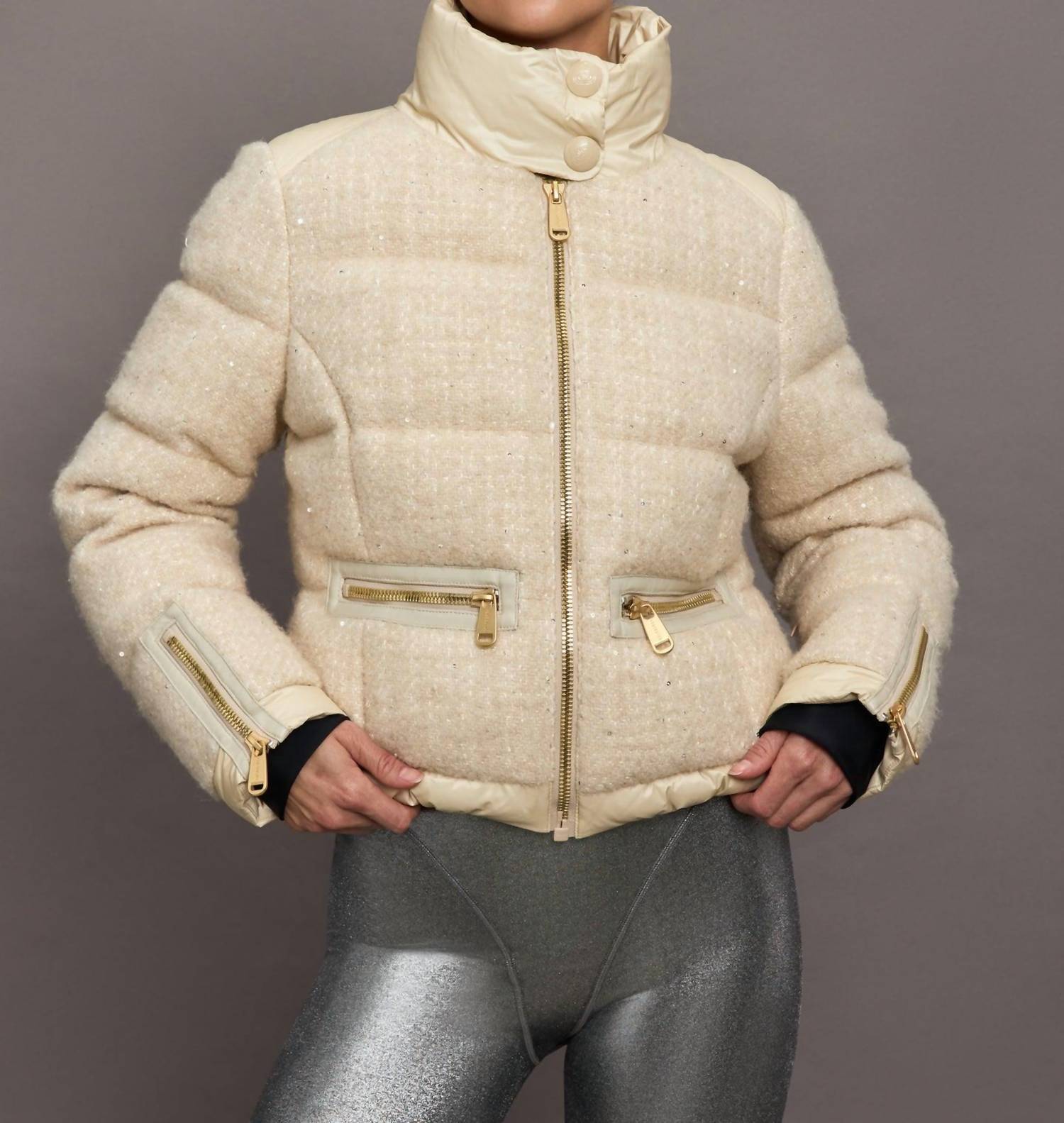 Downright adorable and so comfortable you won't want to take it off. This teddy jacket is a fan favorite. Embrace the perfect mix of technical performance and sophisticated style with the Goldbergh Women's Chamonix Ski Jacket in elegant cream. Featuring long sleeves and a textured pattern, this jacket is designed with premium insulation and a flattering feminine fit. Made from water-resistant and breathable fabric, it boasts a zip closure and multiple pockets for convenience. Ideal for maximalist winter fashion and après-ski adventures, this versatile piece is a must-have for your vacation wardrobe.