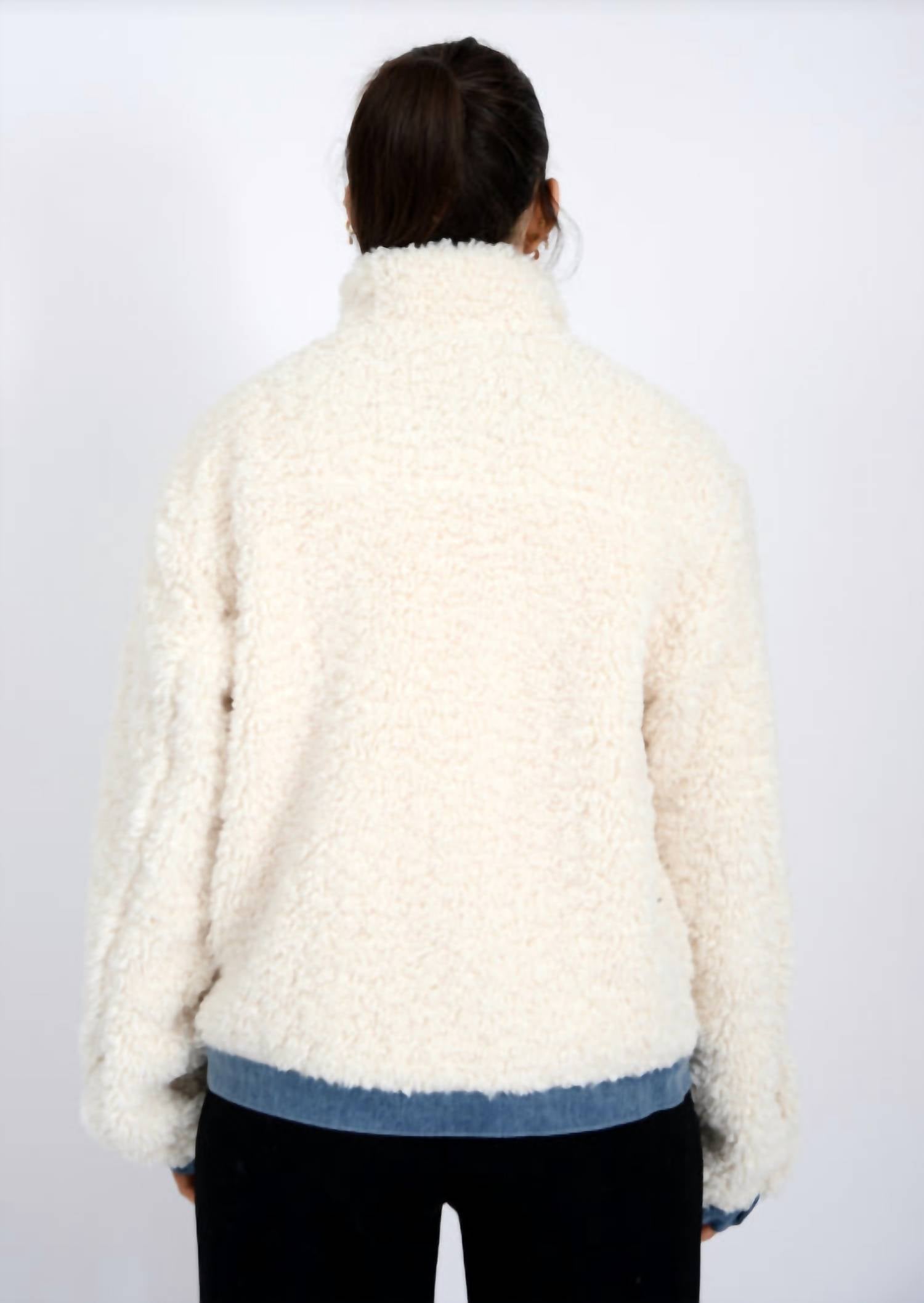 Bundle up in this adorable teddy jacket that'll have you wishing for colder temps. Introducing the Paddy Full Zip Sherpa Jacket by RD Style, a must-have for cozy winter days. This women’s textured teddy jacket in Cream Denim offers long sleeves and is crafted from soft polyester that ensures warmth and style. Perfect for travel and casual Christmas gatherings, it features a practical zip closure and handy pockets. Easy to care for, simply machine wash and line dry to maintain its minimalist charm.