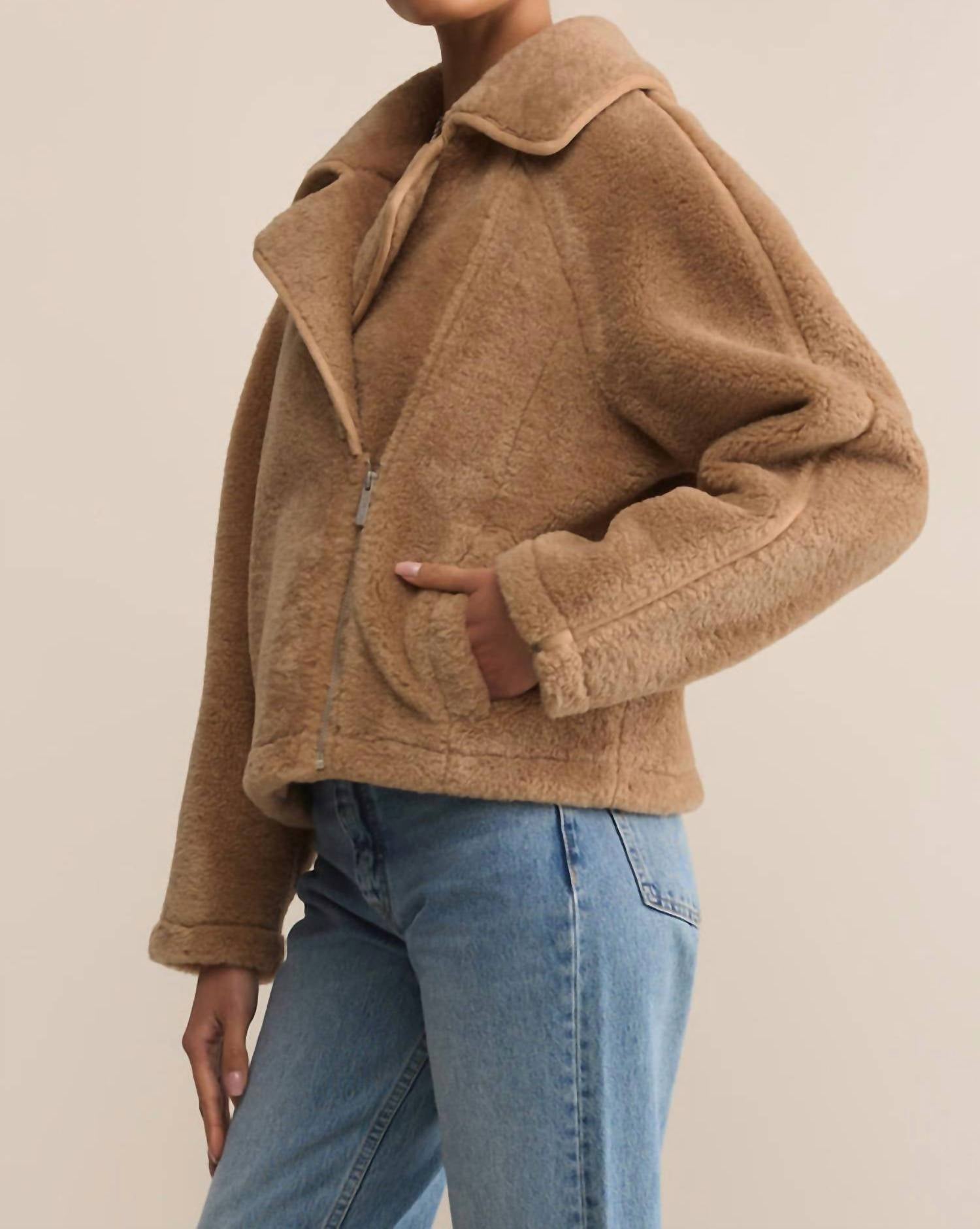 Bundle up in this adorable teddy jacket that'll have you wishing for colder temps. Introducing the Townsend Sherpa Jacket by Z Supply, the perfect maximalist addition to your winter wardrobe. Crafted from 100% polyester, this natural-colored, solid pattern jacket is designed with long sleeves and a plush collar for ultimate warmth. It features a practical zip closure and convenient pockets. For best care, dry clean only.