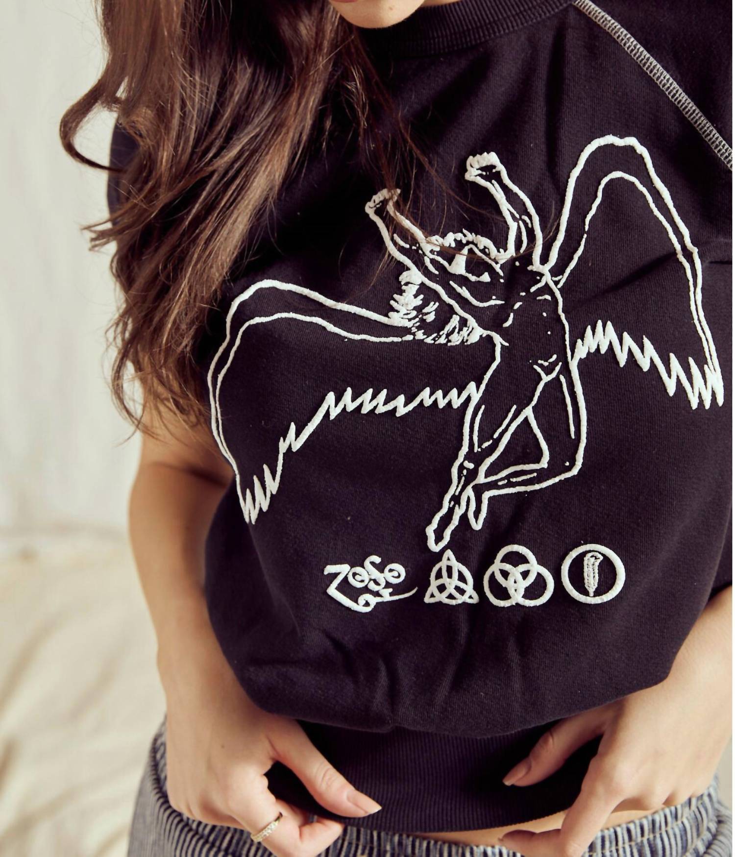 This classic, short sleeve tee will be your go-to staple this season and beyond. Celebrate your love for rock legends with the Led Zeppelin Short Sleeve Icarus Raglan by People of Leisure. This black, graphic tee features short sleeves and showcases the iconic Icarus logo alongside each band member's symbol, with their last names boldly printed on the back. Ethically made in Los Angeles, this crewneck tee is crafted from 100% cotton for comfort. Care for this timeless piece with a machine wash, and tumble dry on low. Available in sizes S-XL.