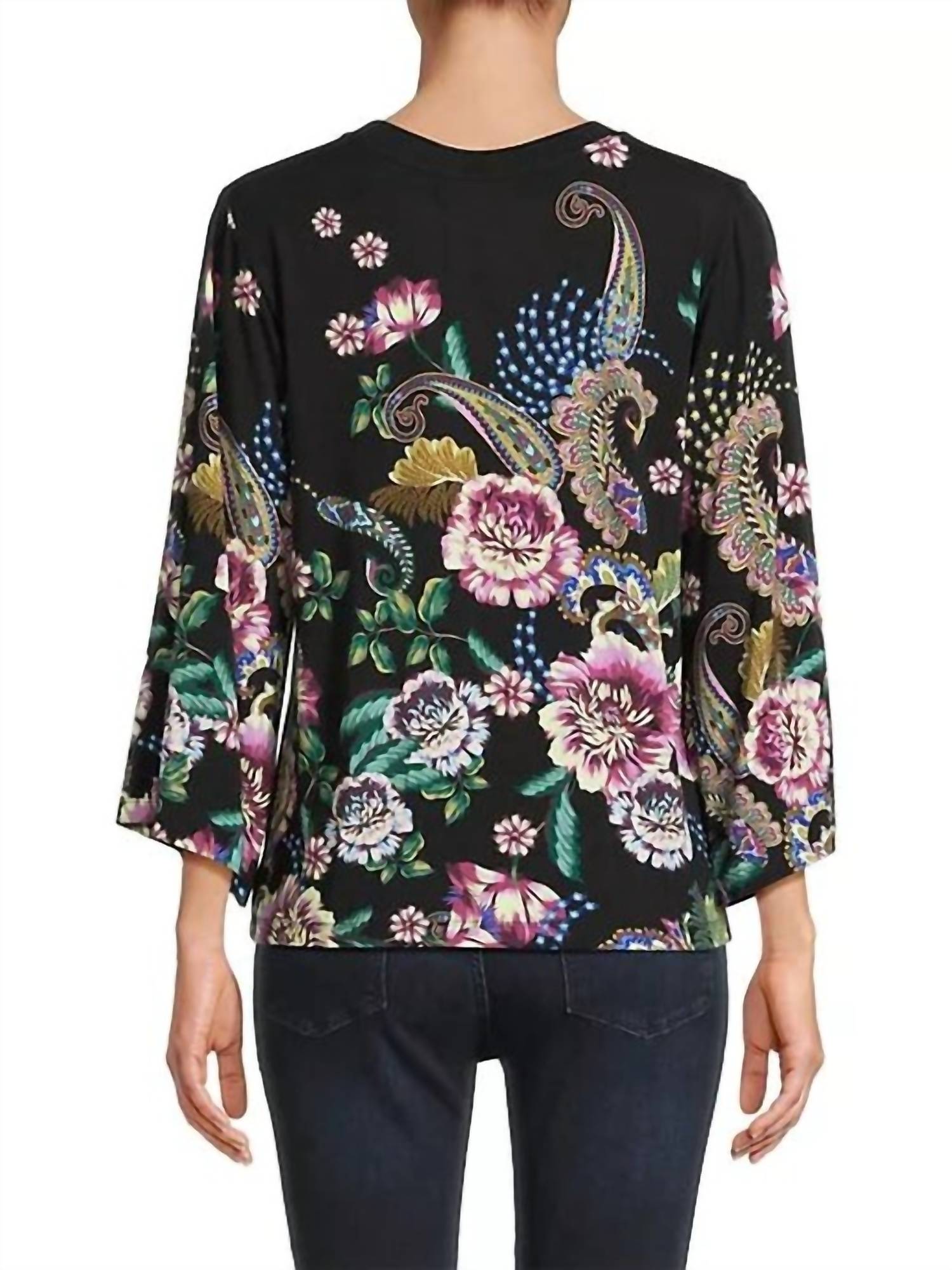 The perfect long sleeve tee that goes with just about anything. The Janie Favorite shirt by Johnny Was is made from a floral-print stretch jersey. It features a crew neck and kimono-style sleeves for a comfortable fit and easily pulls over the head. This shirt is sure to become your favorite go-to top. Machine Wash