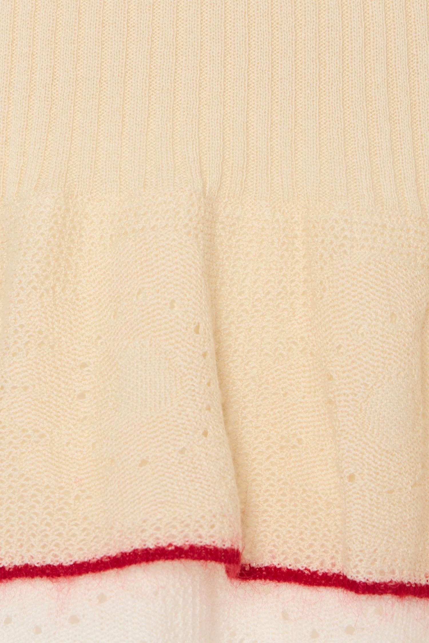 This classic, short sleeve tee will be your go-to staple this season and beyond. Elevate your wardrobe with the Women's Peplum Top by La DOUBLEJ, a perfect blend of Italian elegance and boho chic style. This short sleeve tee is crafted from a luxurious silk blend, featuring a composition of 52% silk, 43% cotton, 2% mohair, 2% polyamide, and 1% wool. Adorned with romantic peplum ruches and a crewneck, it boasts texture and contrast lace trims for added flair. Made entirely in Italy, this light beige top is your new go-to for a vacation-ready, effortlessly elegant look. Closure: Pull on.