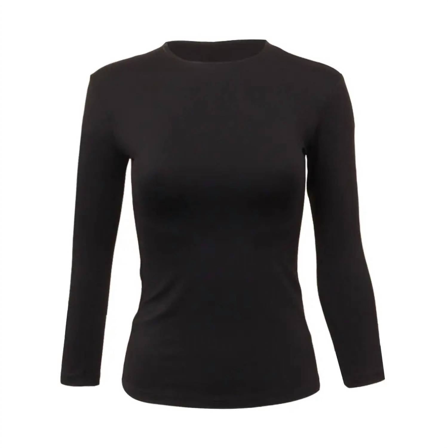 A long sleeve top you can wear with denim, skirts, well... just about anything! Presenting the Long Sleeve Shell, a sophisticated addition to any wardrobe. This piece features long sleeves and a classic crewneck, crafted from a stretchy nylon blend that promises both comfort and breathability. Composition: 90% Nylon, 10% Spandex. Closure: Pull on. Care: Machine wash cold. Available in Dark Navy, it offers a length of 23 inches and a width of 17 inches in size small.