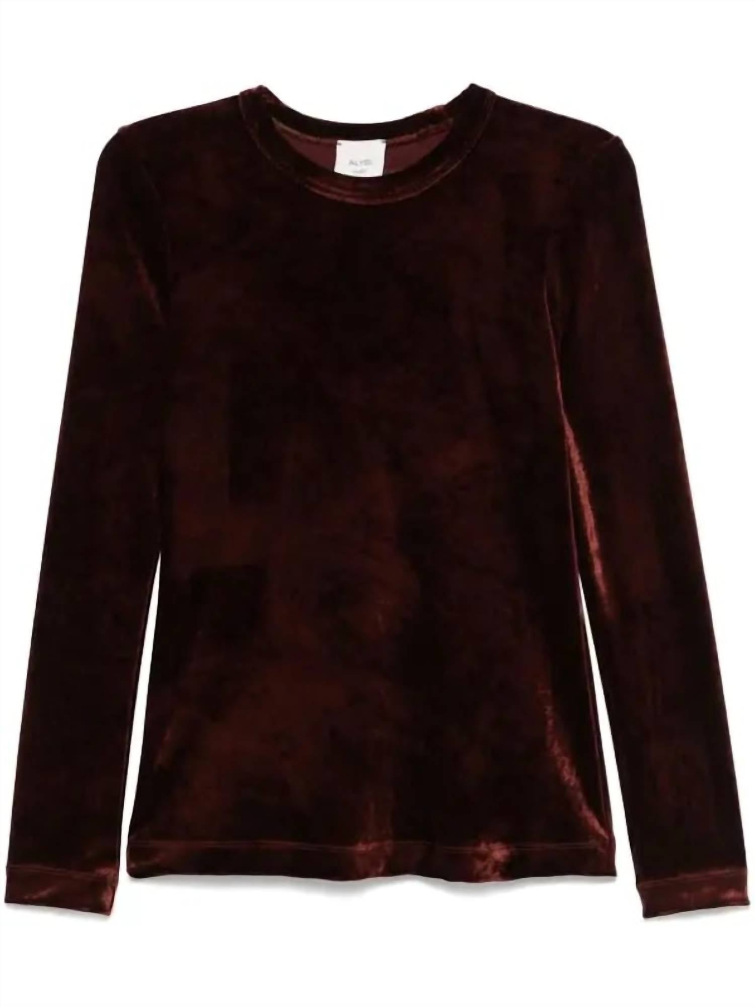 The perfect long sleeve tee that goes with just about anything. Embrace chic minimalism with the Women's Maglia Velvet Feel Scollata by ALYSI, crafted for style and comfort. Featuring long sleeves and a crewneck design, this tee in a solid choco hue is perfect for any vacation ensemble. Made from a luxurious Viscose Blend, it offers a smooth, velvet feel against the skin. The easy pull-on closure adds convenience, while hand wash only care ensures longevity and maintains the fabric's softness.