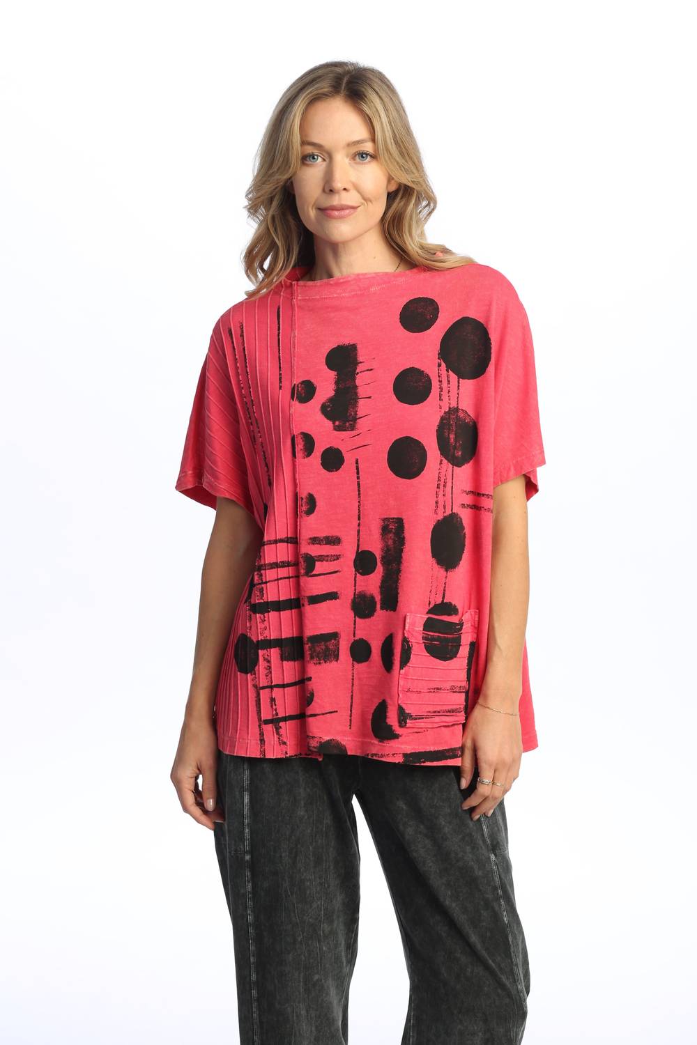 The short sleeve tee you'll want in every color. Elevate your wardrobe with the Veronica Mineral Washed Mock Neck Cotton Top by Jess & Jane, featuring short sleeves and a chic mock neckline. Crafted from 100% cotton, this lightweight top offers a mineral-washed, garment-dyed texture in a vibrant raspberry color. Made in the USA, it features a pull-on design for easy wear. Care is a breeze with pre-washed, pre-shrunk fabric that can be machine washed on a cold gentle cycle.