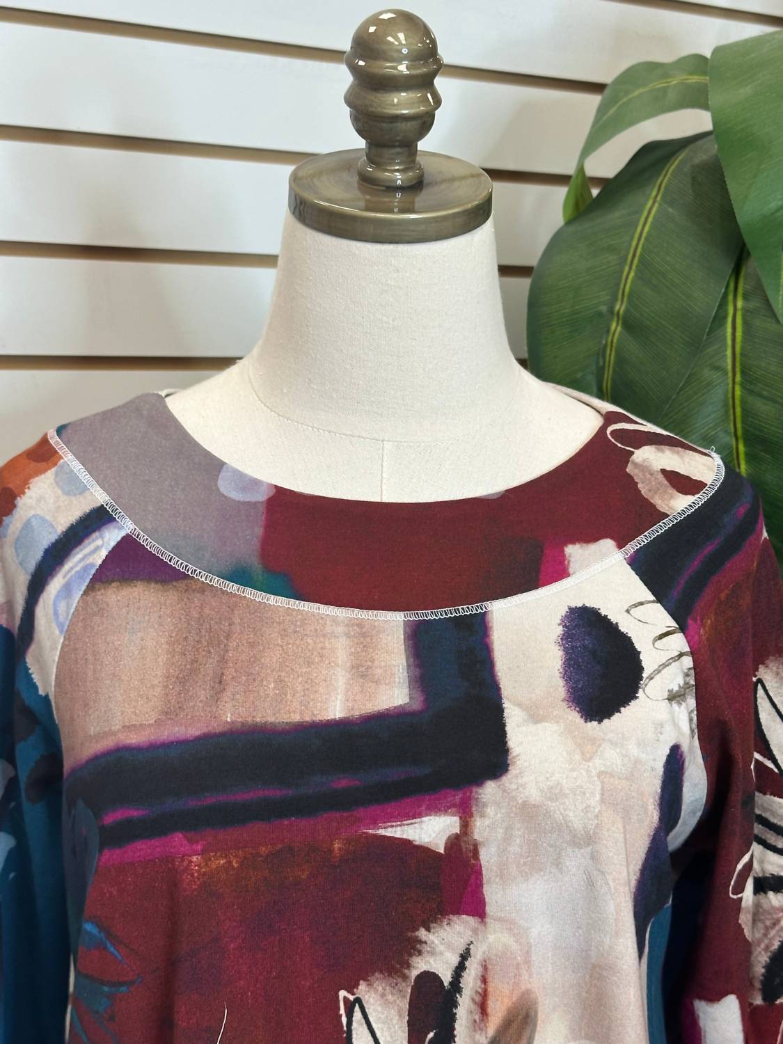 Great fit, cute design, soft fabric. You'll love everything about this long sleeve tee. Introducing the Women's Provence Top by Jess & Jane, a patterned brown tunic perfect for the maximalist trend. This long-sleeve piece is crafted from a breathable cotton blend and features a comfortable 95% cotton and 5% spandex composition, ensuring a gentle stretch for all-day wear. Designed with a classic crewneck and a pull-on closure, this top combines durability with sophisticated casual style through its heavy stitching on the seams. Care is made easy with machine wash and tumble dry instructions, making it a versatile addition to your summer wardrobe.