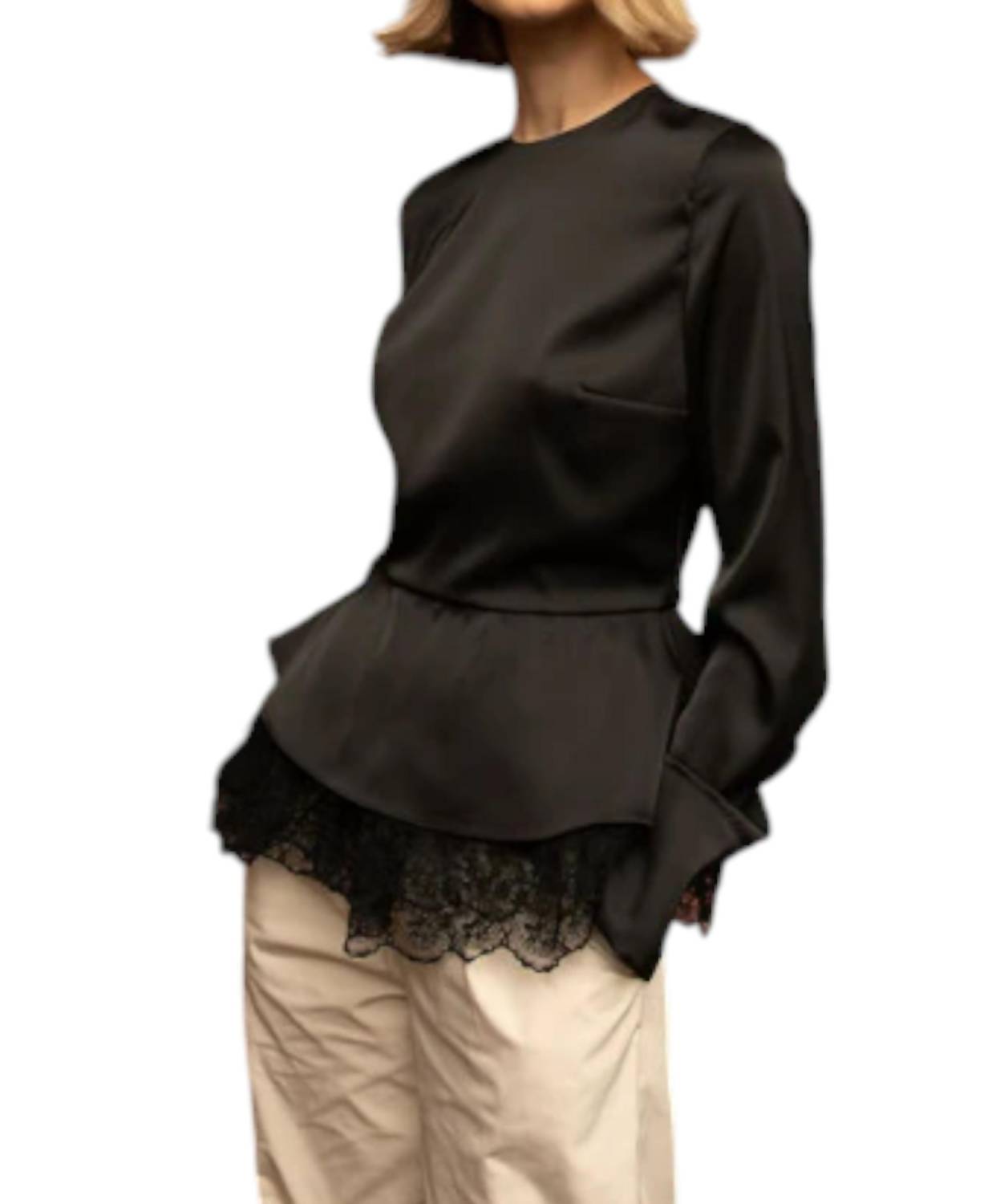 Great fit, cute design, soft fabric. You'll love everything about this long sleeve tee. Introducing the Kelsi Long Sleeve Top by Kika Vargas, a sophisticated piece crafted for the discerning woman. This top is made from luxurious black satin, featuring a solid minimalist design perfect for a cocktail party. It boasts long sleeves and a classic crewneck, adding a touch of elegance to any spring occasion. With a convenient pull-on closure and functional pockets, this top combines style with practicality.